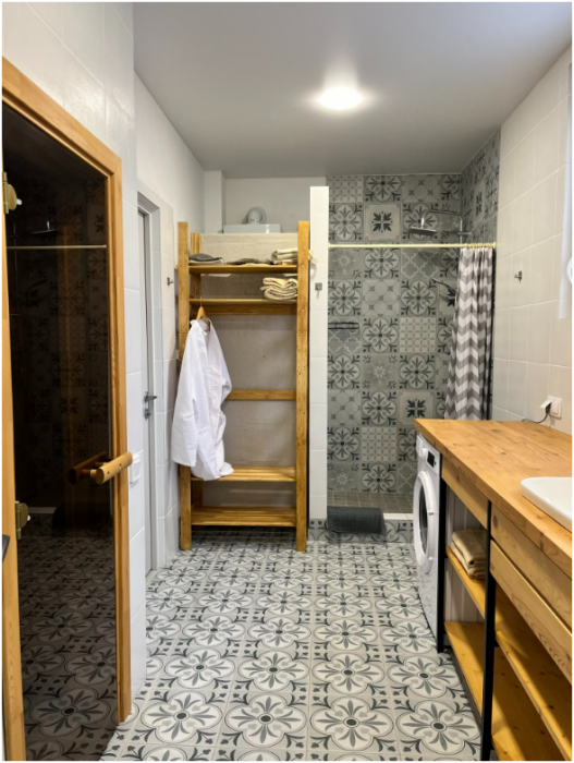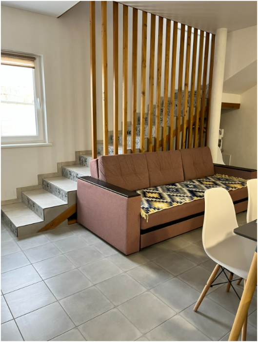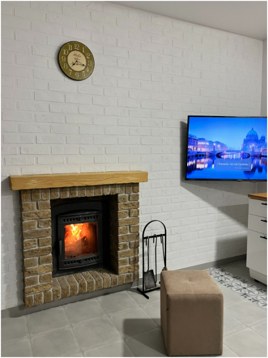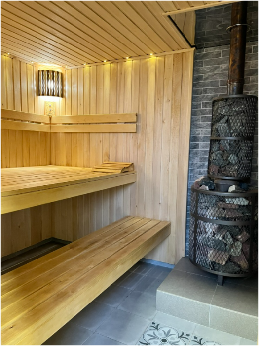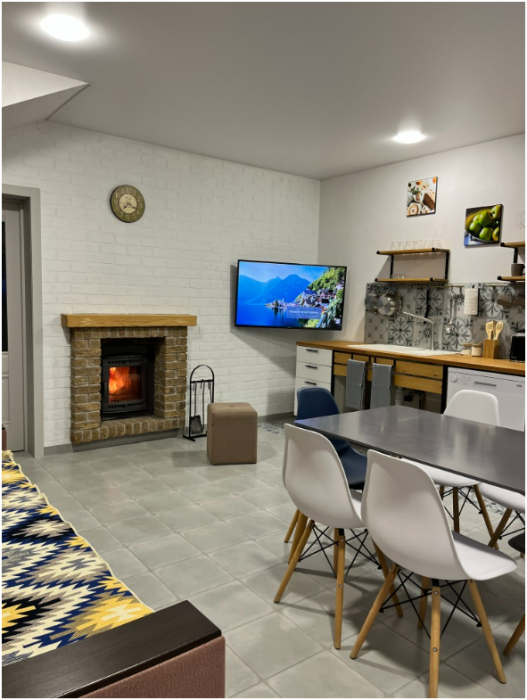 Нa 1 этaже наxодятся: куxня-столовая-гостиная (раскладной двухместный диван), русская баня на дровах, ванная комната, с/у, большая крытая терраса с зоной барбекю и местом для отдыха.