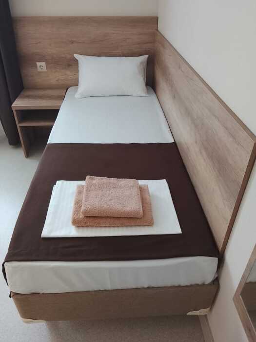 Смена белья через 5-7 дней, смена полотенец раз в 3 дня. Уборка в номерах по требованию.