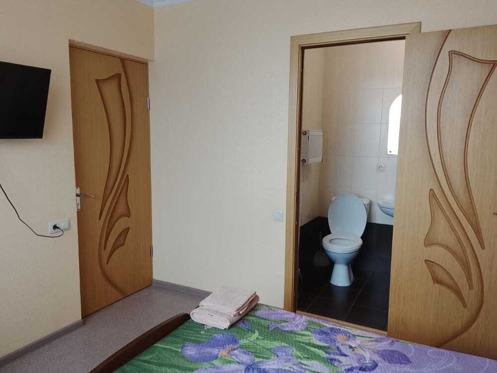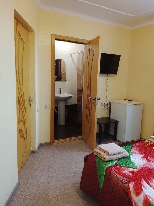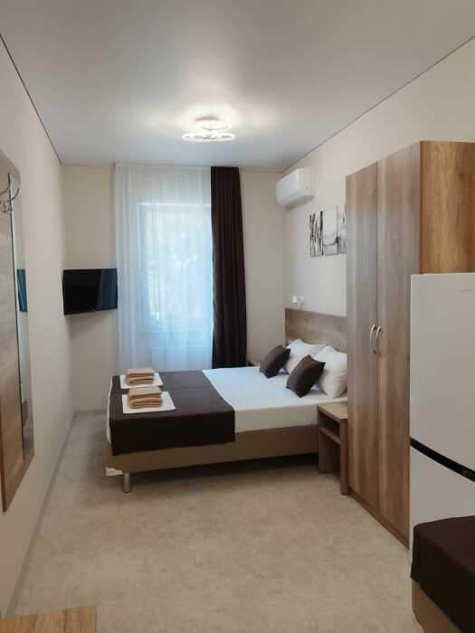 В номере двухспальная кровать, шкаф для одежды, прикроватная тумбочка, журнальный столик, душ и туалет, сплит-система, телевизор, холодильник. Wi-fi, полотенца.