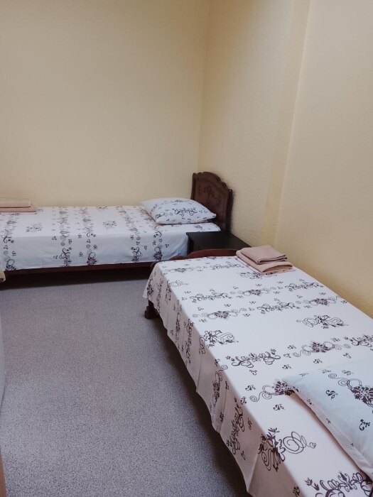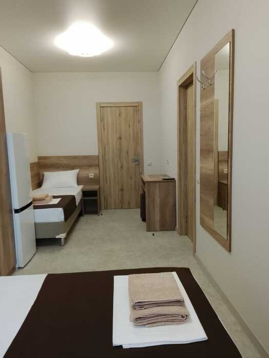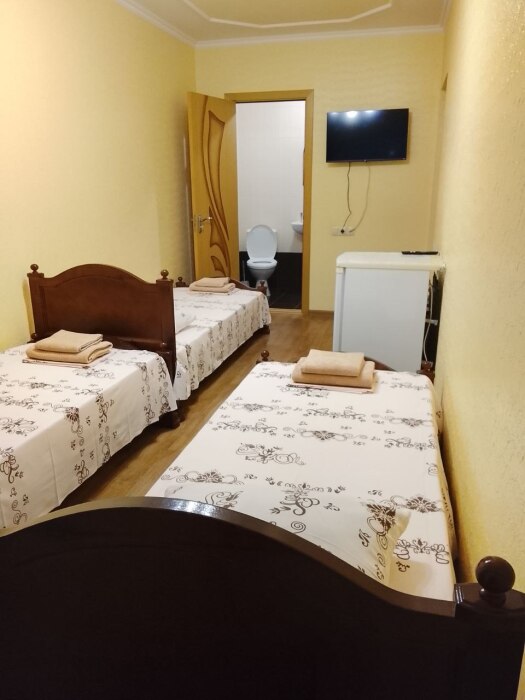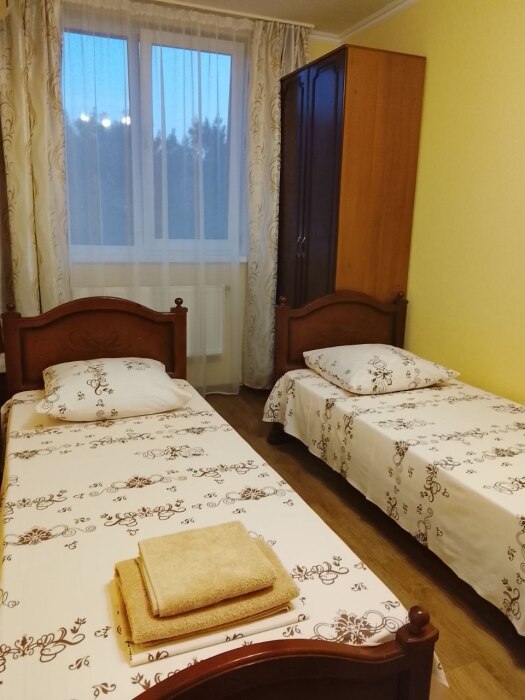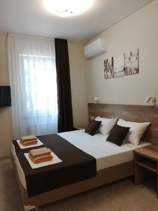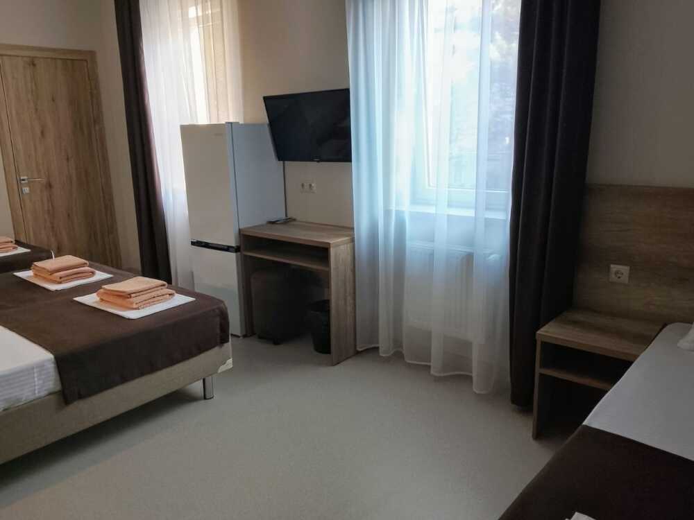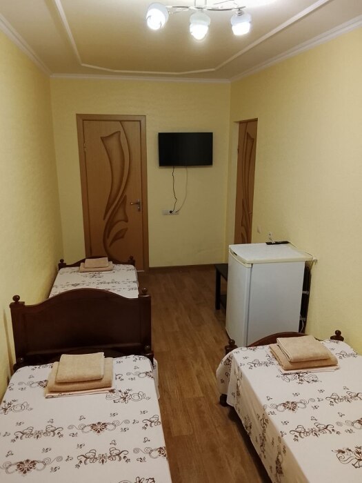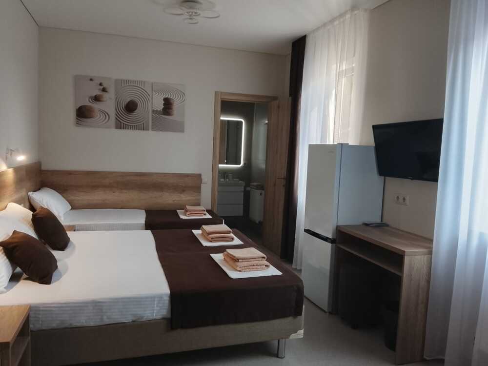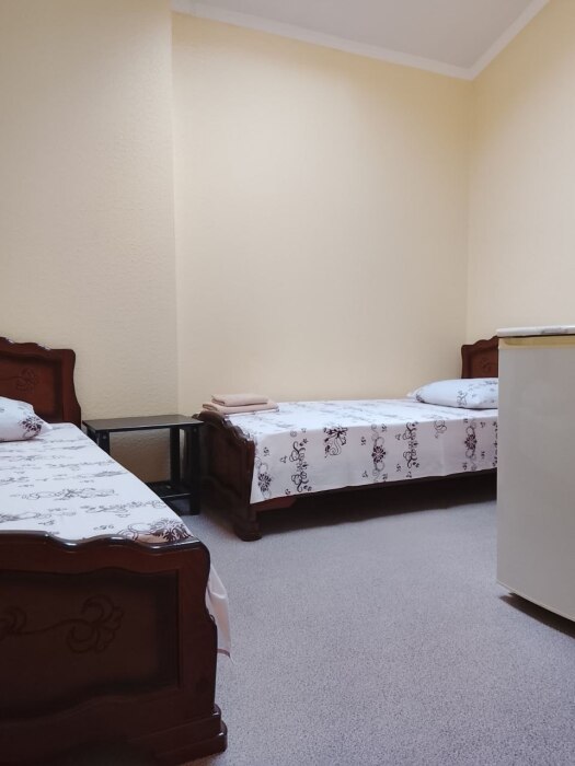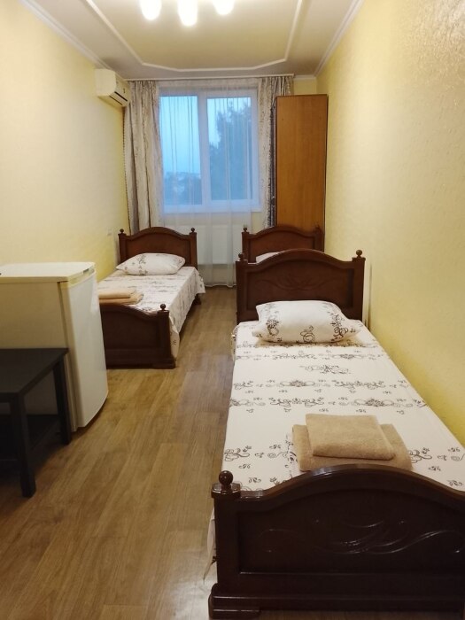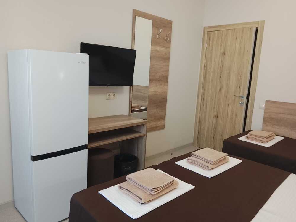 В номере две односпальные кровати, шкаф для одежды, журнальный столик, душ и туалет, сплит-система, телевизор, холодильник. Wi-fi, полотенца.