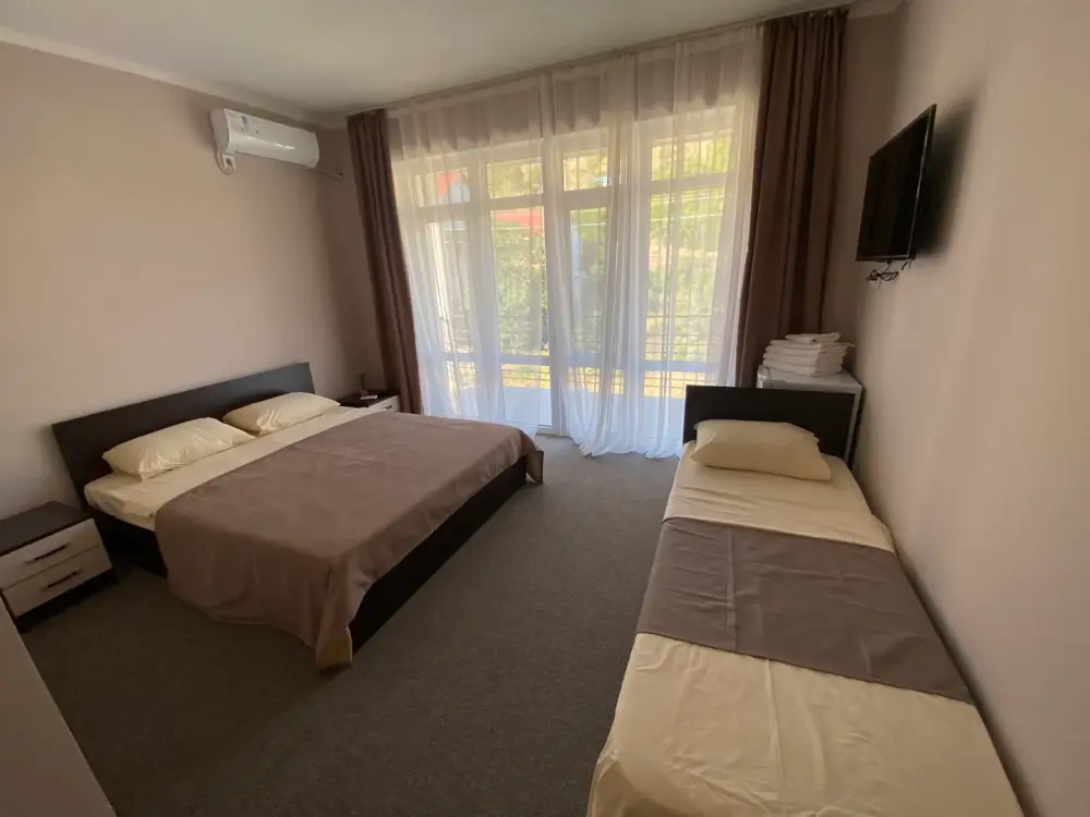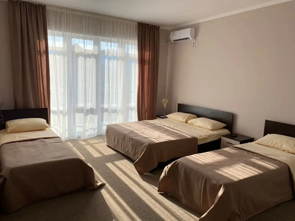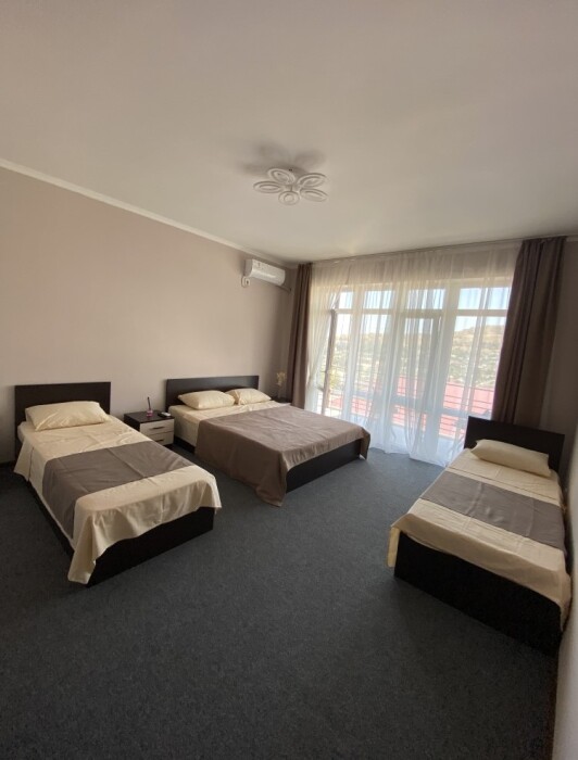 Для бронирования доступны 2-, 3- и 4-местные номера. каждый номер оснащен кроватью, шкафом, кондиционером, телевизором, холодильником, санузлом. В некоторых номерах есть балкон. На территории гостевого дома работает Wi-Fi.