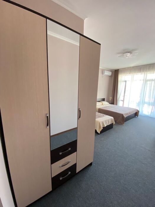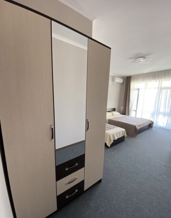 Предоставляется номер двух (трехместный) с балконом. В номере есть санузел (душ, туалет). Также: кондиционер, холодильник, телевизор.