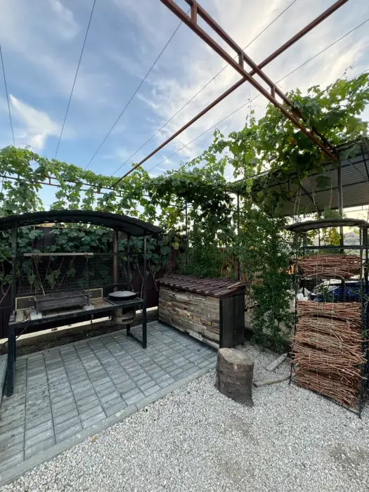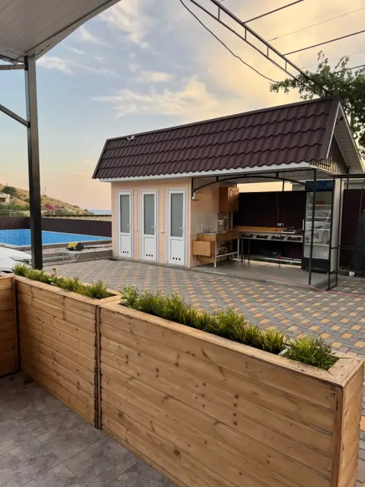 Для удобства гостей в гостевом доме есть общая кухня, где можно приготовить еду или просто насладиться чашечкой кофе. На кухне есть все необходимое для приготовления пищи. Также к услугам гостей - мангал, открытый бассейн, стиральная машина.