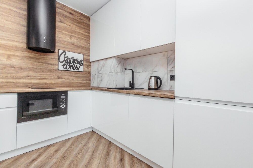 Сдаётся новая однокомнатная видовая квартира с отличным дизайнерским ремонтом у моря. Кухня оборудована всем необходимым: качественной бытовой техникой, столовыми приборами и посудой, имеется микроволновая печь, варочная панель, вместительный двухкамерный холодильник.