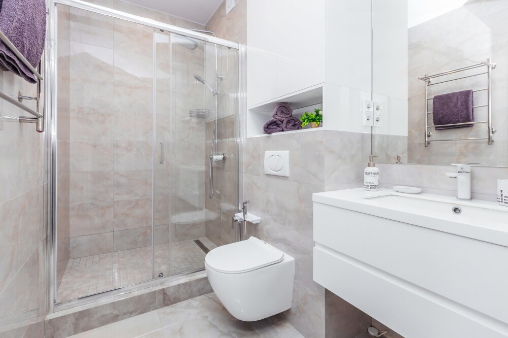 В спальне расположена удобная и комфортная кровать с ортопедическим матрасом высокого уровня. Гостиная зона с большим двухспальным диваном - комфорт класса, Smart TV и стабильный интернет. Санузел с дорогой и качественной сантехникой.
