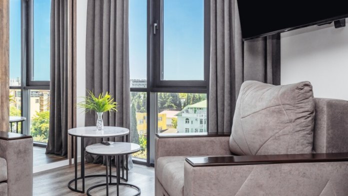 Изюминка данных апартаментов - это панорамные окна с великолепным видом на море и город, а шикарные закаты солнца Вас не оставят равнодушными. Закрытая придомовая территория для отдыха детей и взрослых, спортивные и Workout площадки с тренажерами, 2 теннисных корта, столы для пинг-понга, настоящее футбольное поле, современный, летний открытый бассейн, не входит в стоимость проживания), (детские площадки, качели. Вы можете купаться, загорать и заниматься спортом не выходя за пределы комплекса.