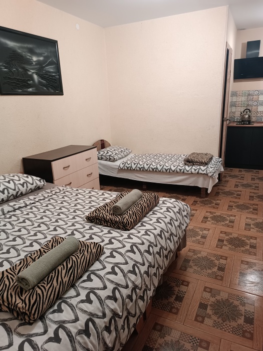 Однокомнатный номер с кухней и санузлом, спальня совмещена с кухней и отдельно санузел, 3 спальных места