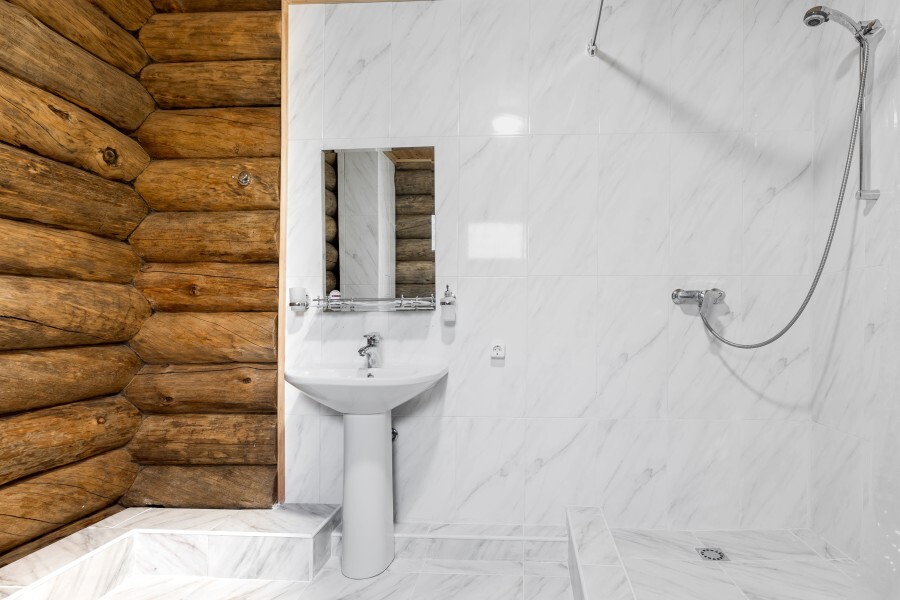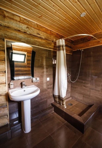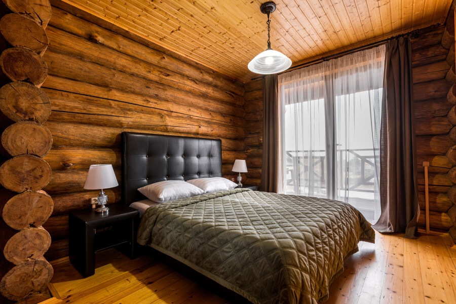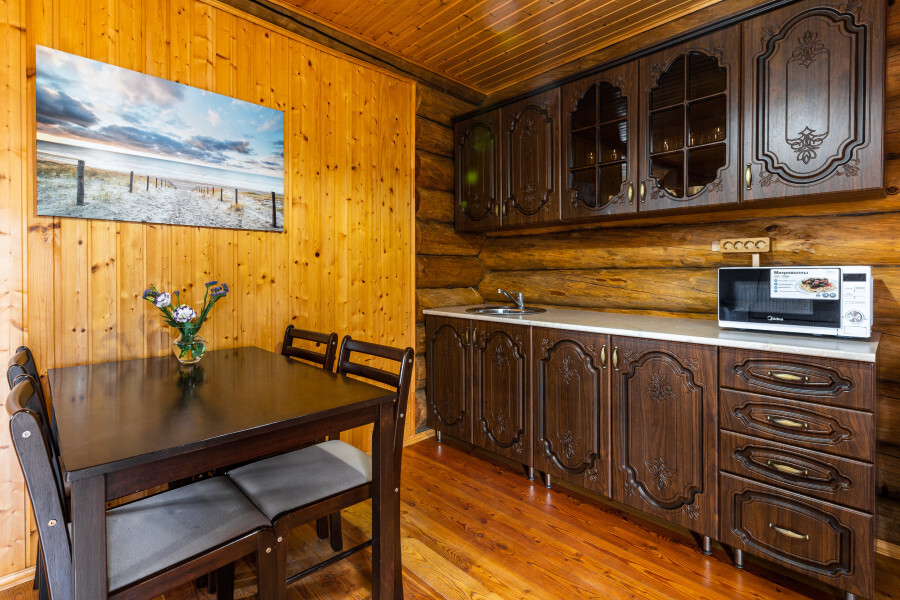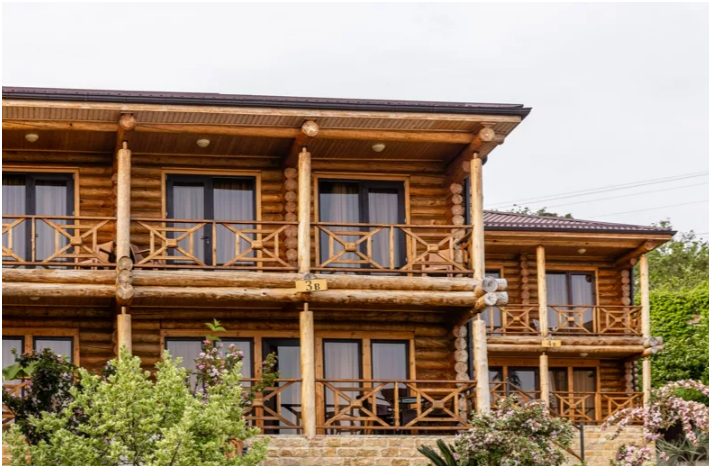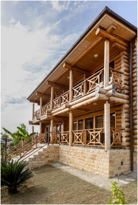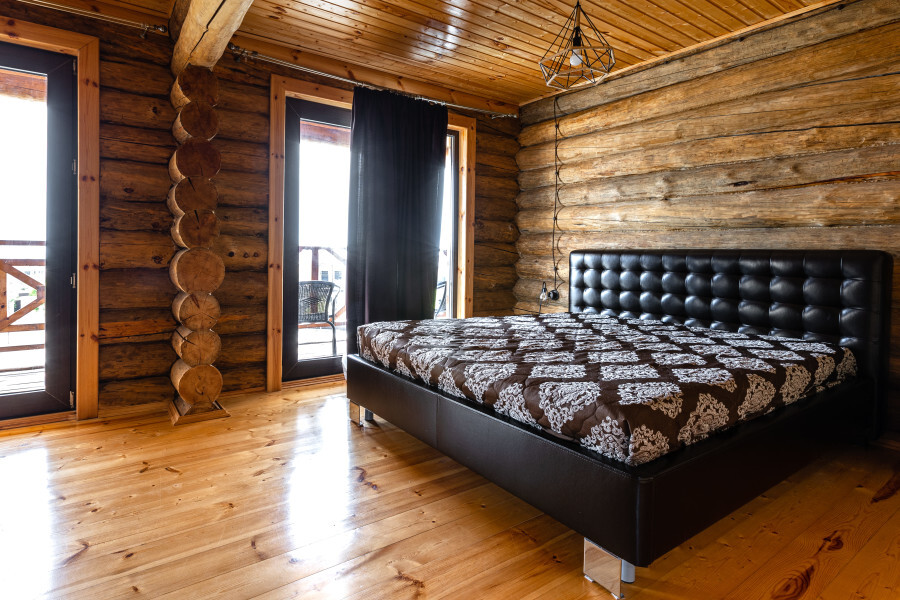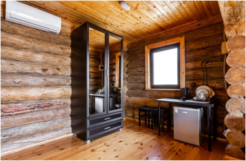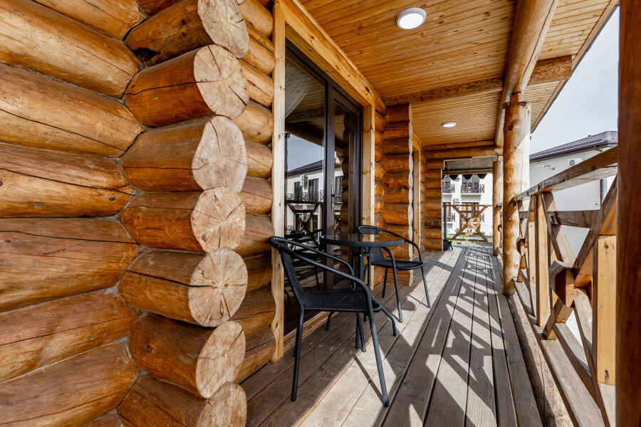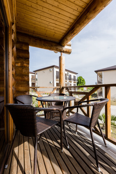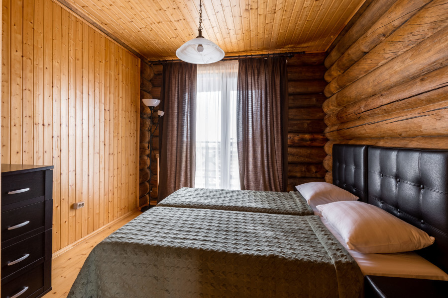 Номера повышенной комфортности представлены двухуровневыми апартаментами из деревянного сруба.