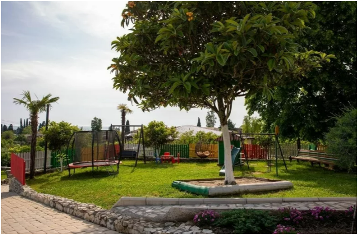 В жаркий летний день можно коротать время, принимая солнечные ванны на одной из террас для загара, или спрятаться от жгучего солнца в гамаке под пушистой кроной могучих деревьев, играть в пляжный волейбол, настольный теннис, бадминтон и шахматы. Конечно же, мы не забываем о наших маленьких гостях и их досуге. В их распоряжении игровая площадка под открытым небом с многообразием детских принадлежностей.