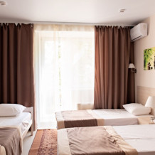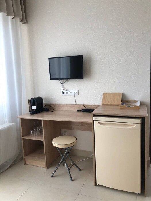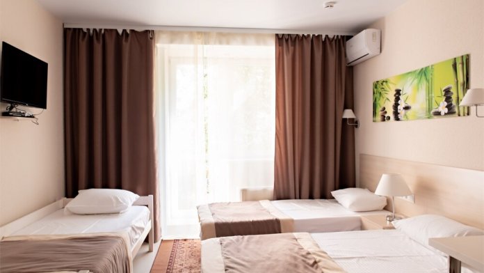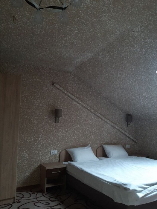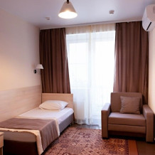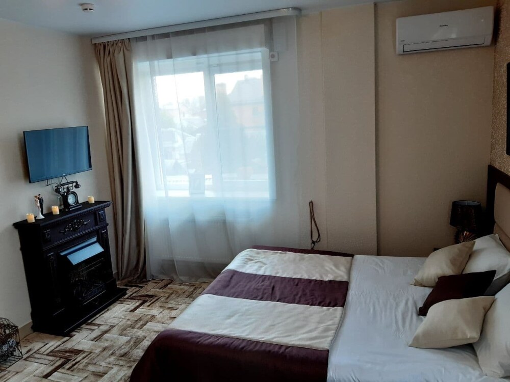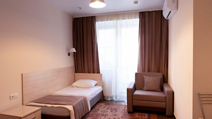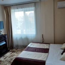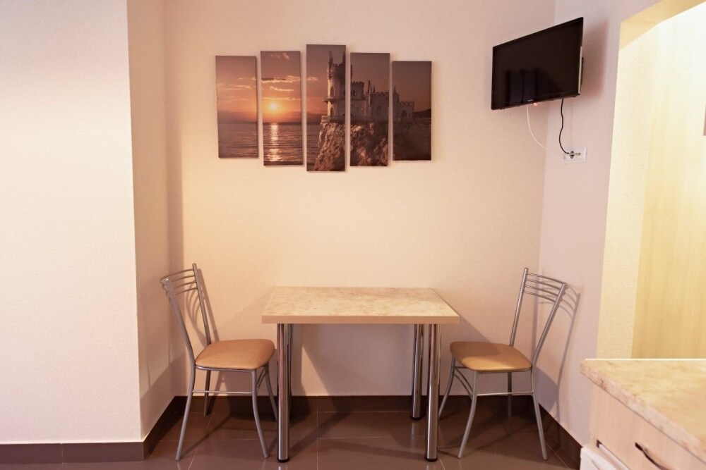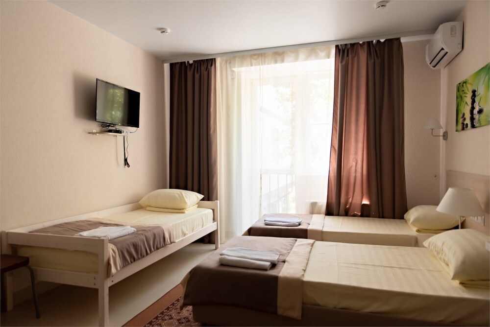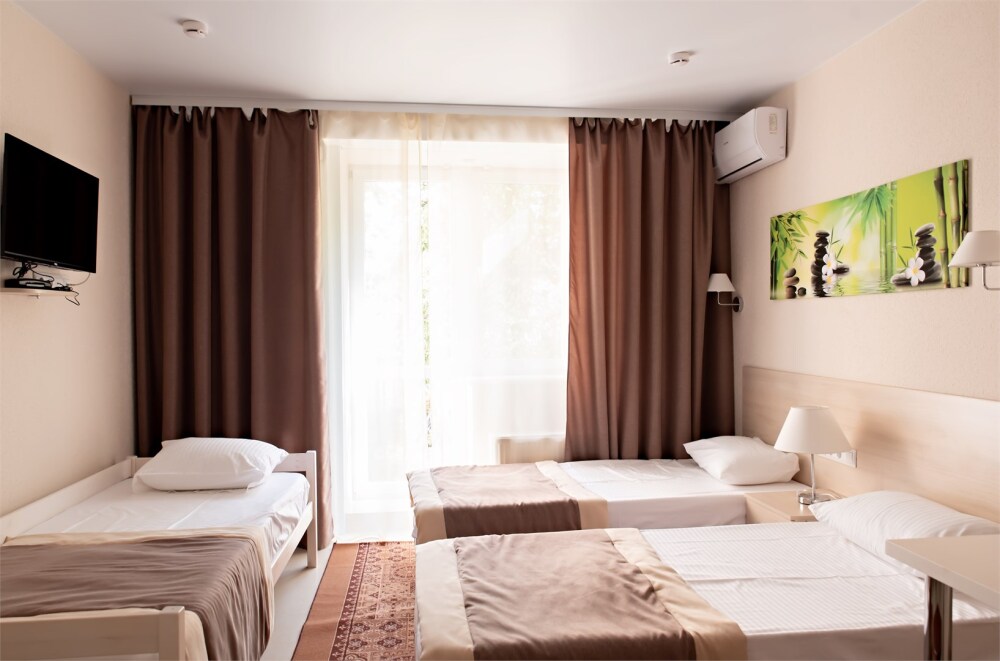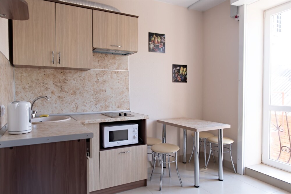 В наличии различные виды номеров: номера-студио, одноместные, двухместные, семейные номера. Номера оснащены холодильником, электрической и микроволновой печами, чайником и всей необходимой посудой. В каждом номере отдельный санузел, туалетные принадлежности входят в стоимость проживания, в номере имеется телевизор и городской телефон, очень удобные кровати, шкаф и письменный стол, Вы сможете отдохнуть и, если нужно, поработать, будете чувствовать себя, как дома. Wi-Fi и парковка предоставляются бесплатно.