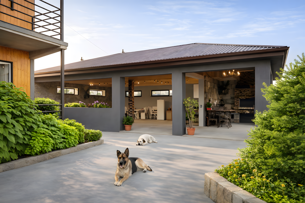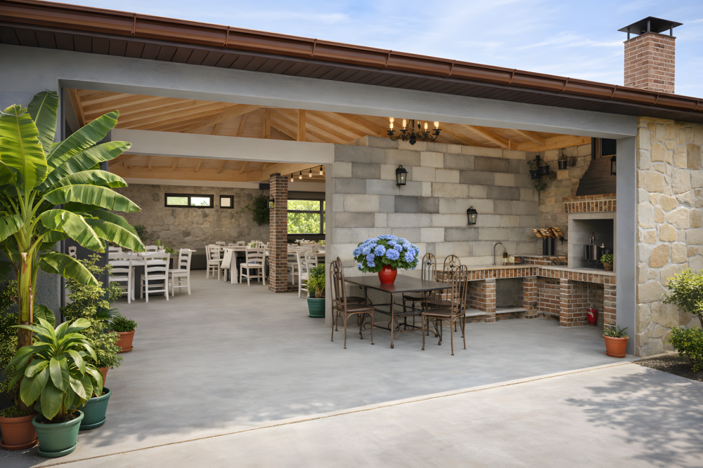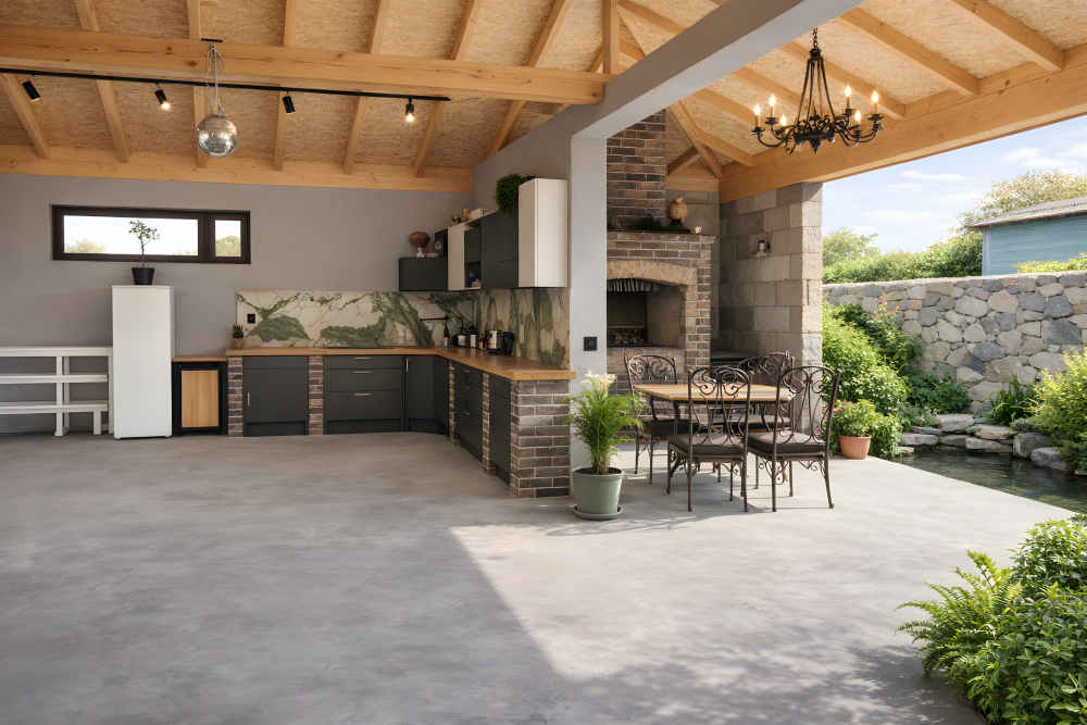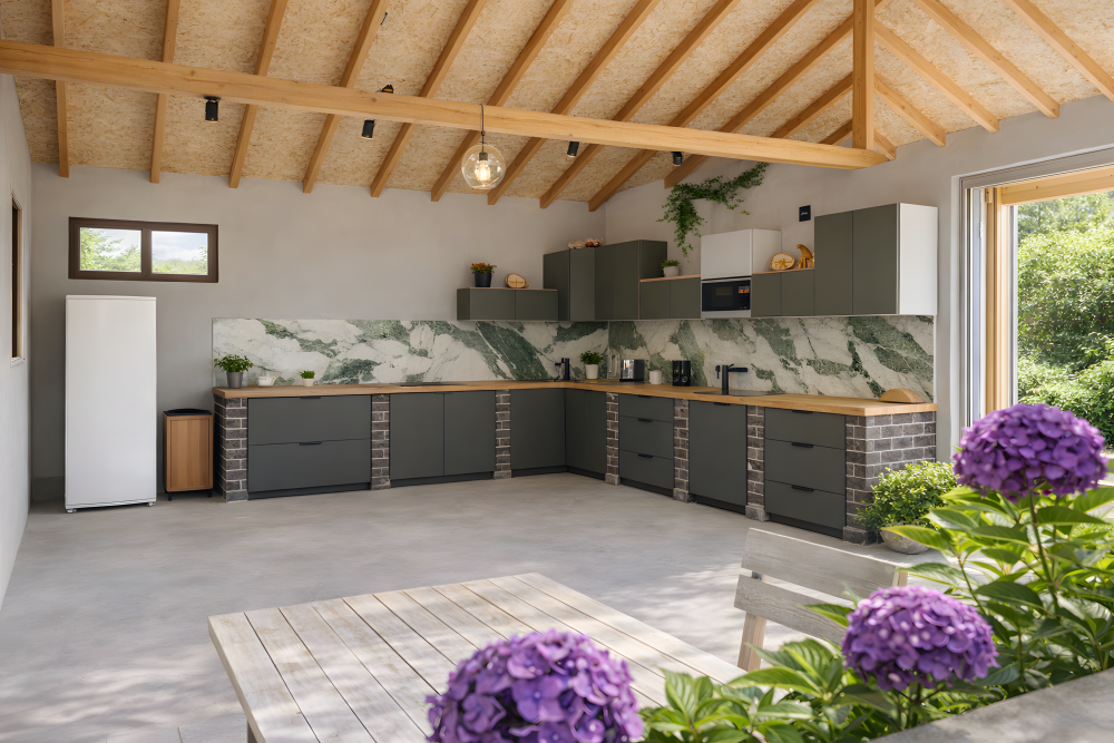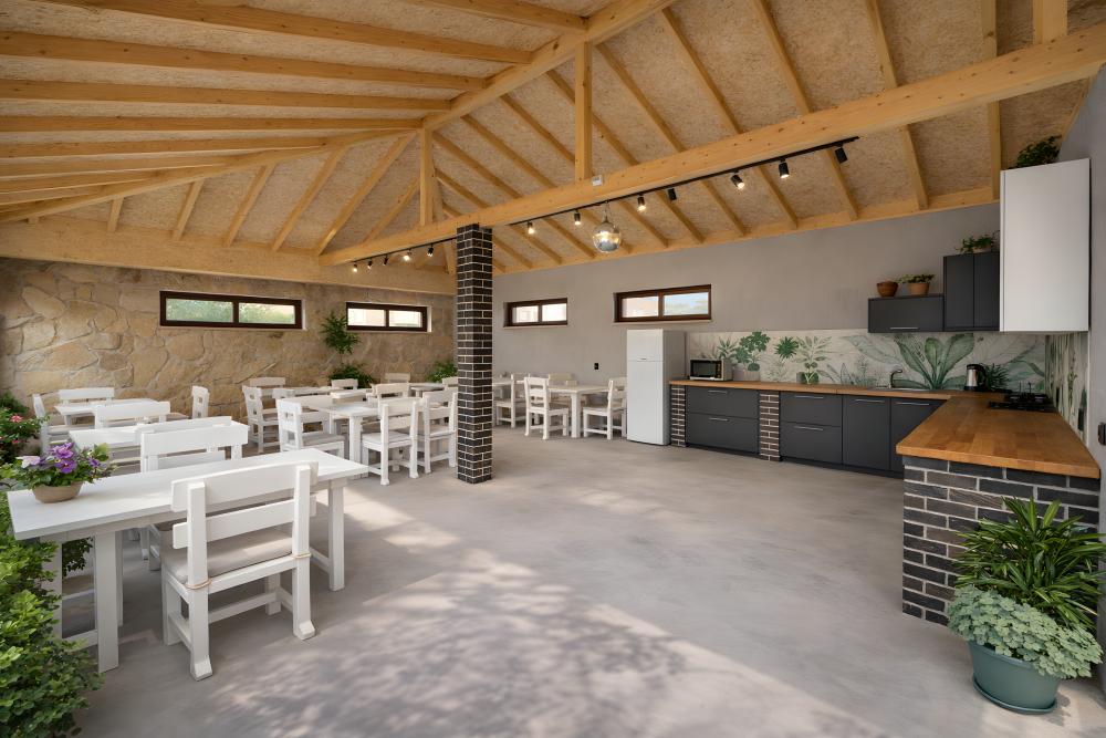 Территория закрытая, зеленая и ухоженная. Для отдыха оборудованы зоны с садовой мебелью и мангалом. Гости могут пользоваться летней кухней для самостоятельного приготовления пищи — это особенно удобно при длительном проживании и отдыхе с детьми.
