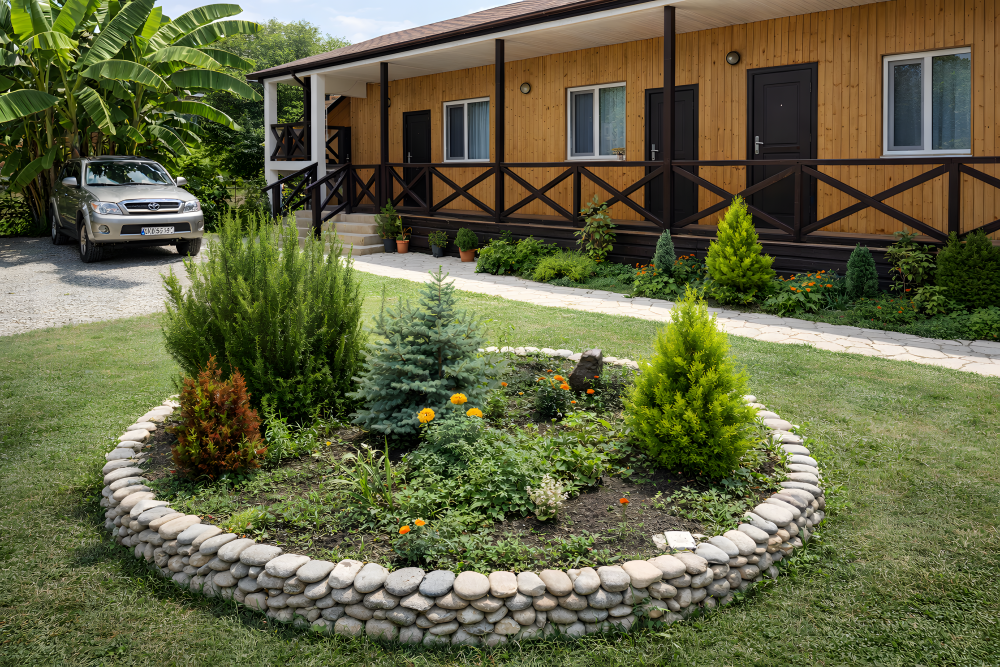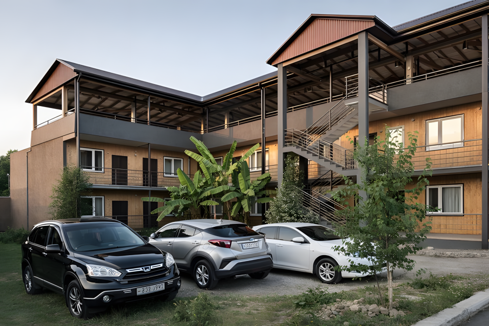 Объект находится в удобной локации: рядом магазины, кафе, рынок и остановка транспорта. До границы с Россией — около 4 км, что делает размещение удобным для гостей, приезжающих на автомобиле.