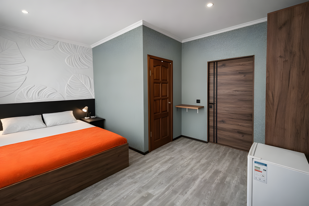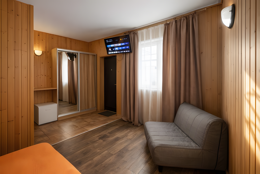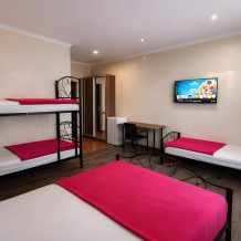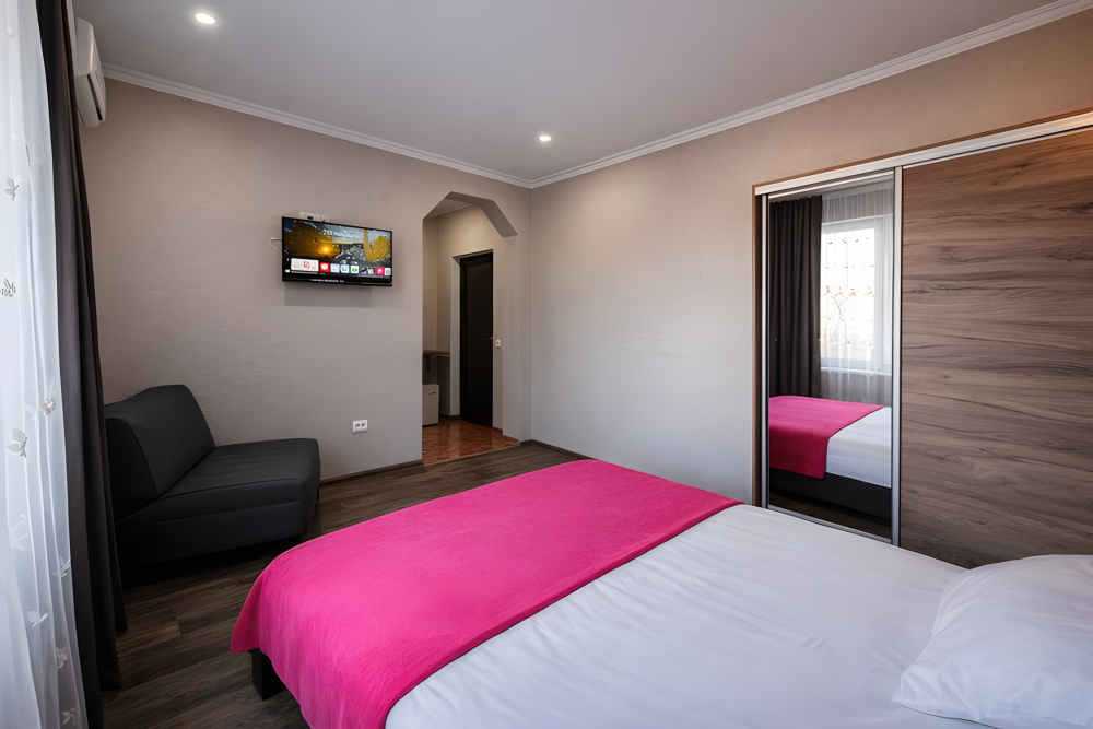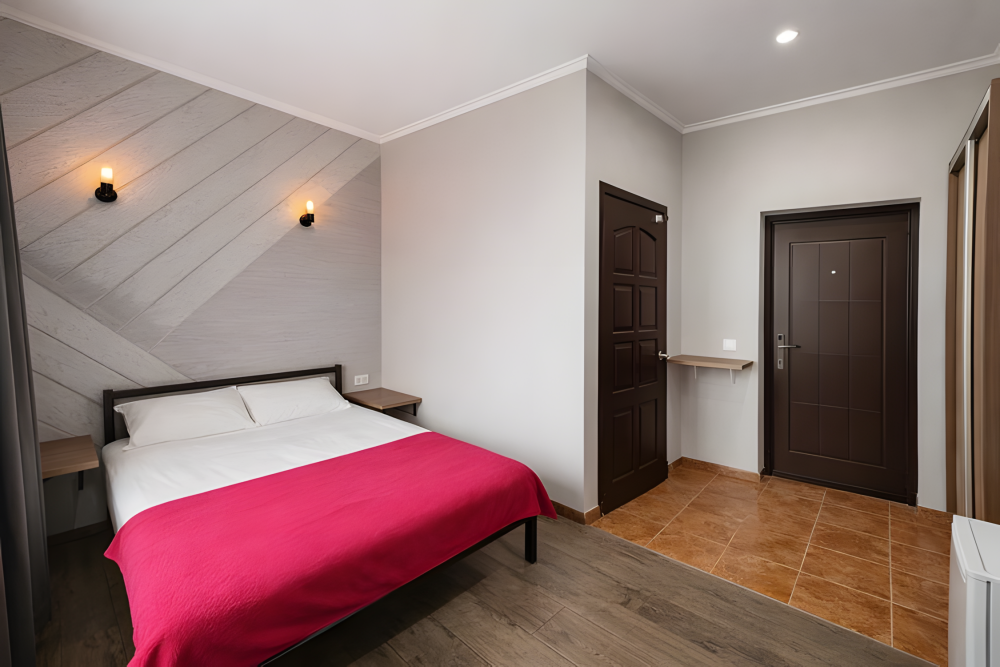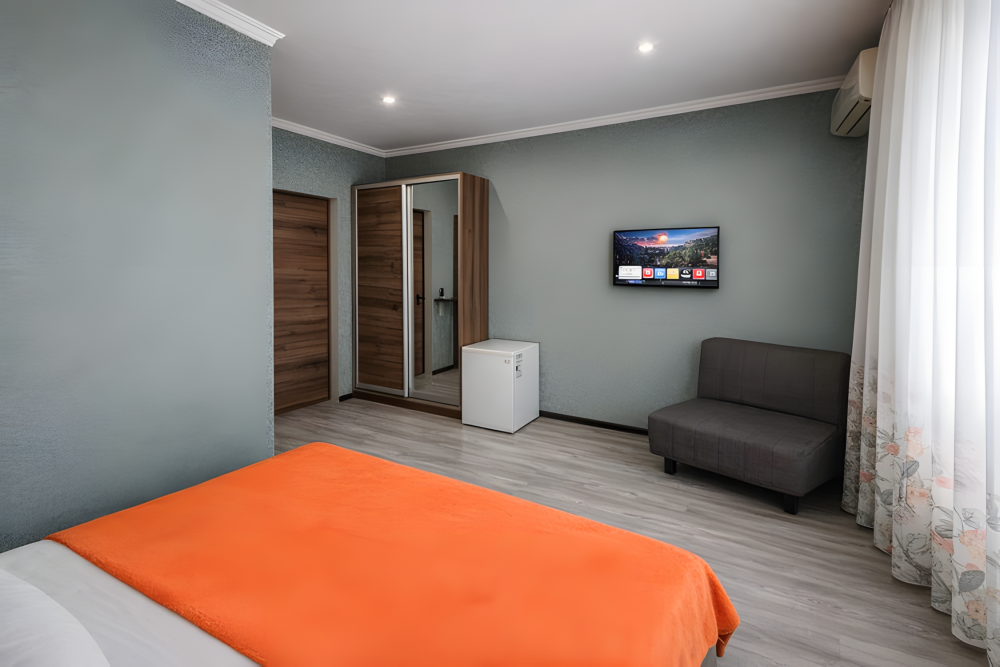 Просторный номер площадью 25 м², рассчитан на размещение до 5 гостей. Подходит для большой семьи или компании друзей.