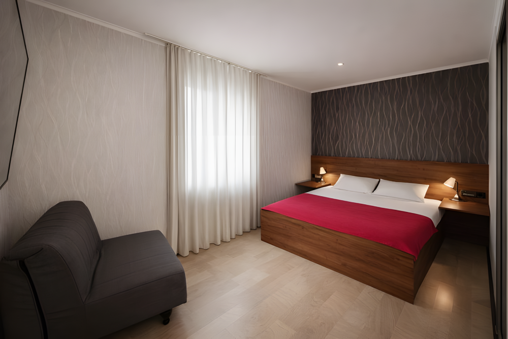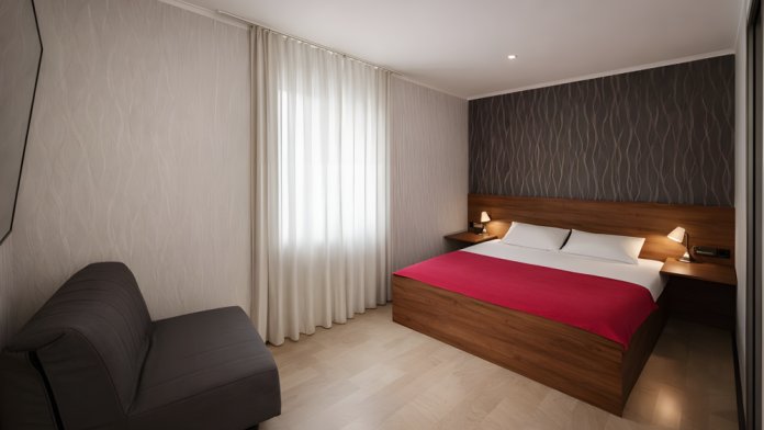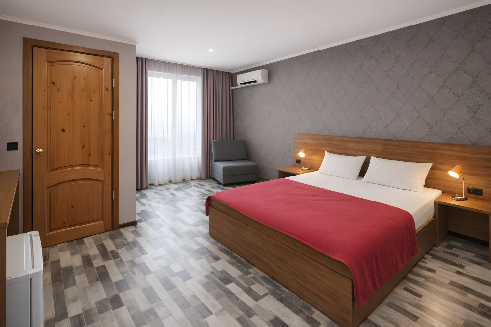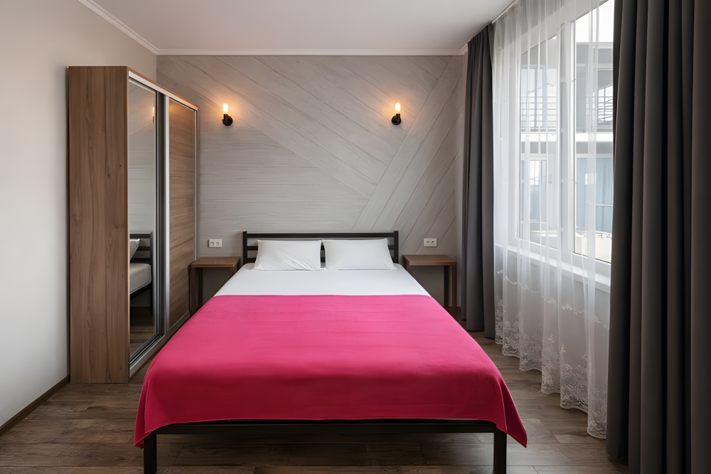 Варианты размещения: одна двуспальная кровать и 1 дополнительное место.