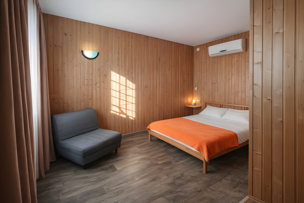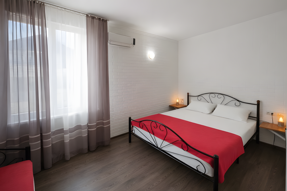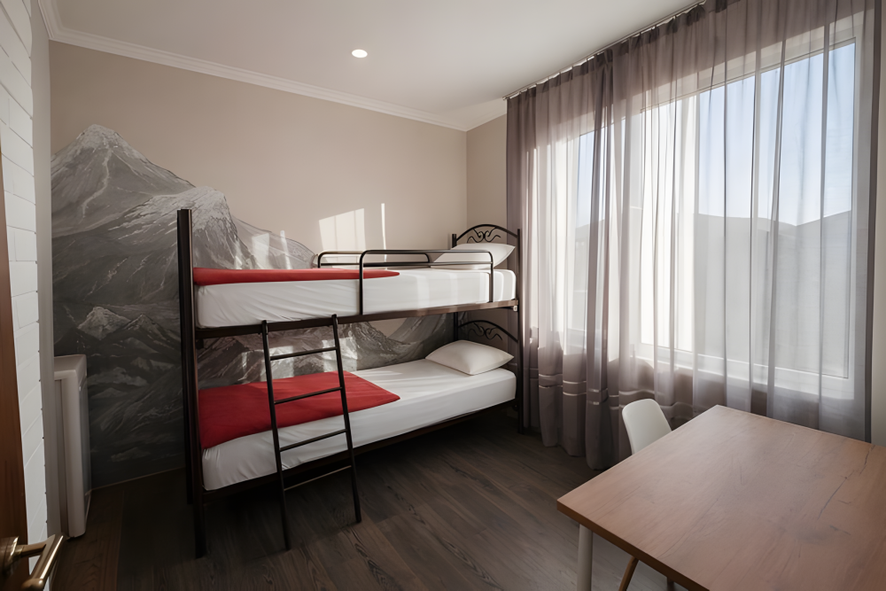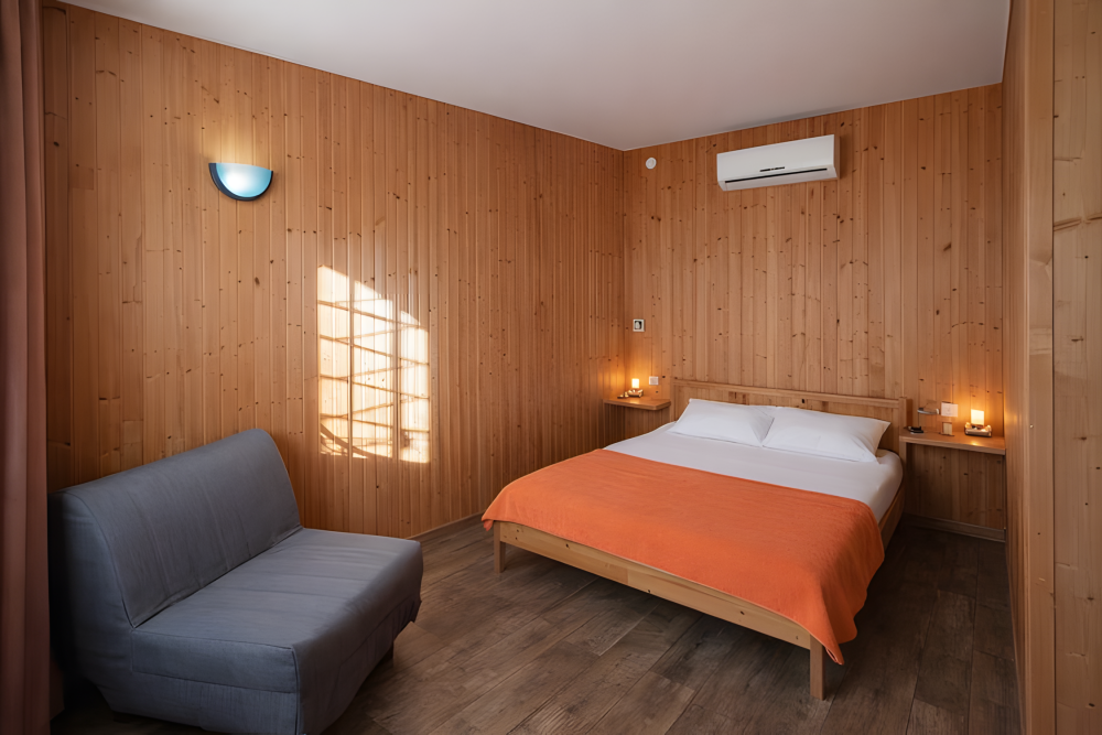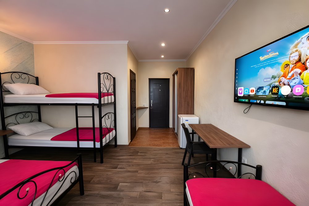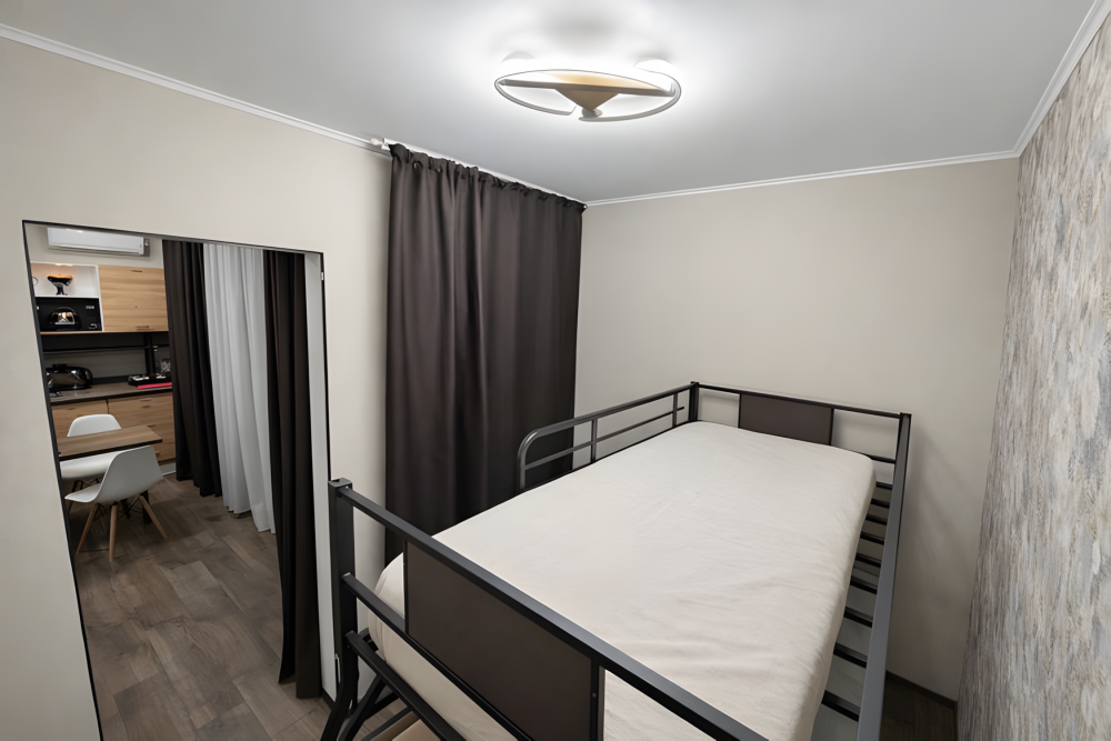 Варианты размещения: двуспальная кровать, двухъярусная кровать, и дополнительно спальное место.