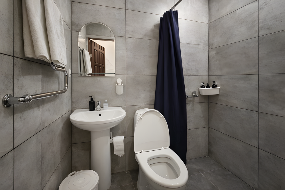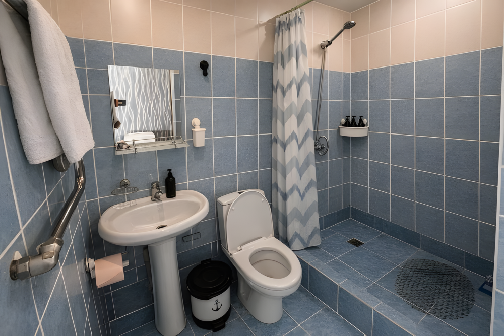 — собственным санузлом с душем