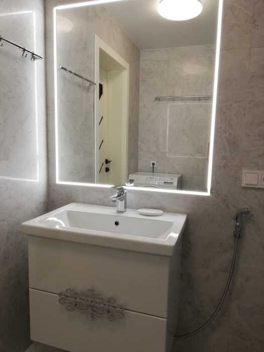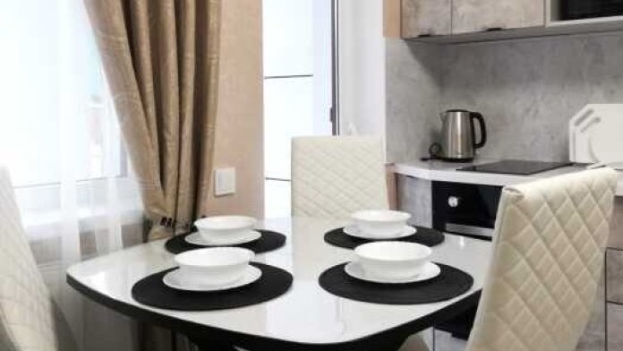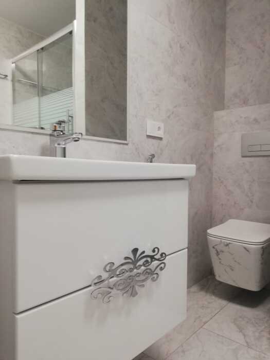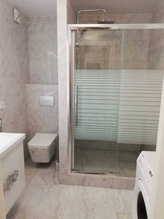 На кухне встроенная индукционная печь с духовым шкафом, микроволновка, чайник, посуда и все кухонные принадлежности, стиральная машина. Качественная, современная сантехника. Большая лоджия с видом на бассейн (во двор).