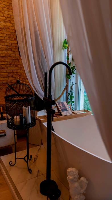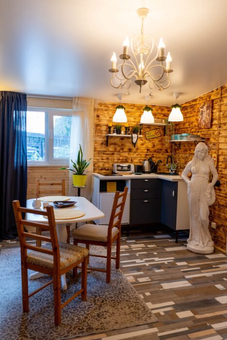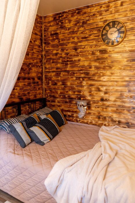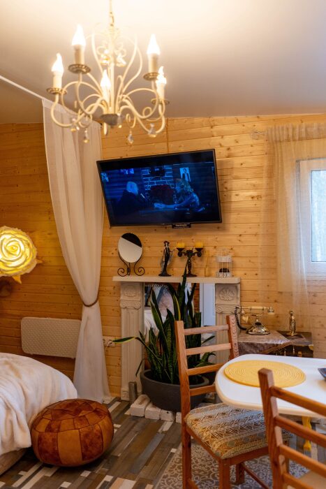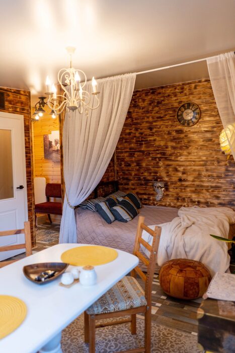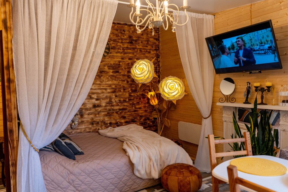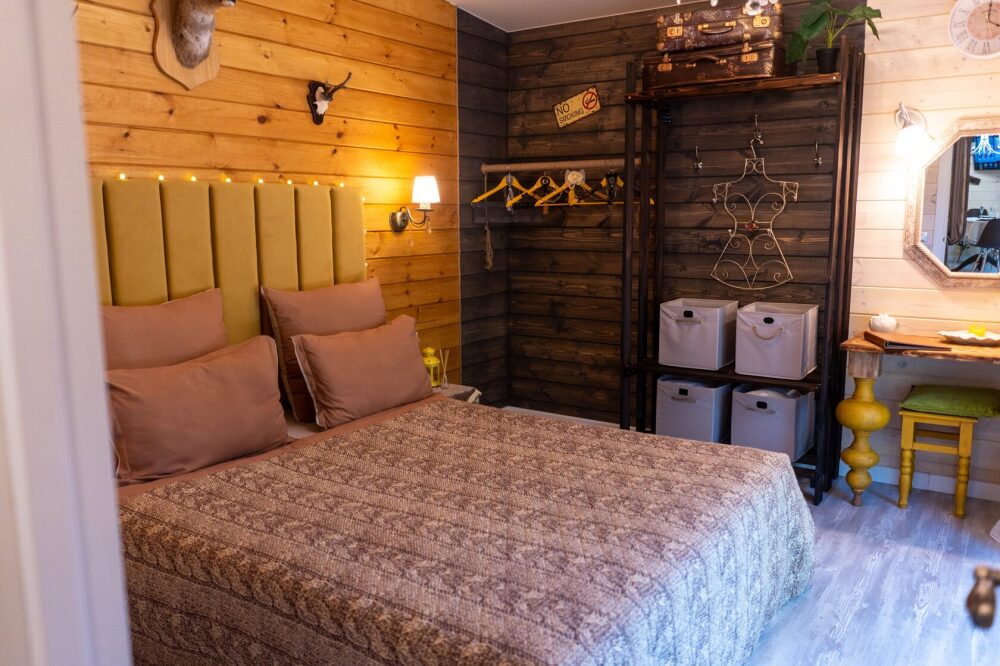 Коттедж для 2 гостей. Атмосфера комфортного и осовремененного дома чудака Мэрлина идеальна для романтиков и мечтателей. Здесь как нигде ранее Вы будете спать как младенец в люльке.