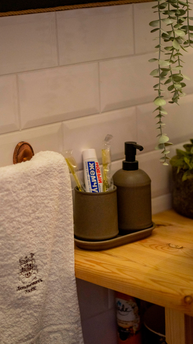 В доме для Вас (включено в стоимость проживания): чай, кофе, сливки, соль, сахар и сахарозаменитель. Махровые тапки, по 3 новых полотенца на каждого гостя… Одноразовые зубные щетки и паста. И обязательно, маленький сладкий комплимент при встрече!