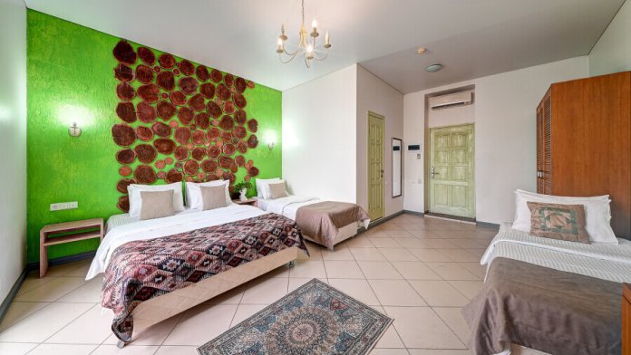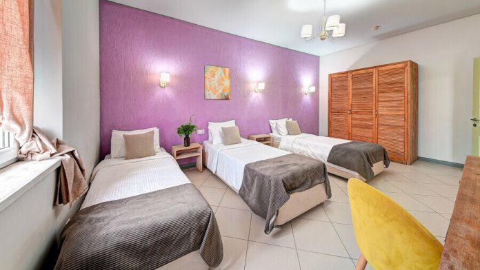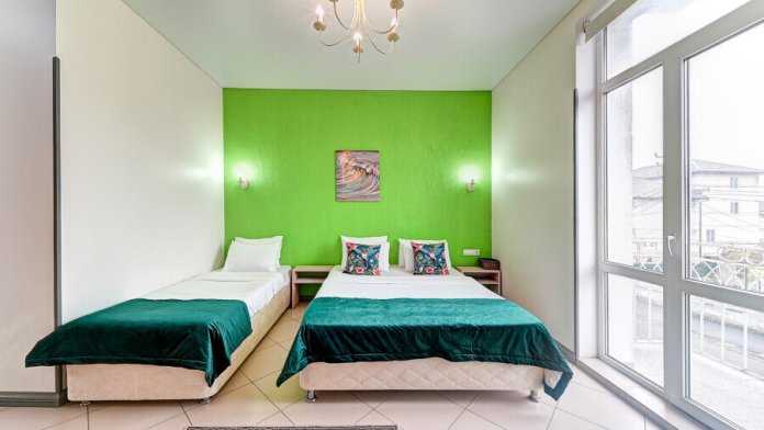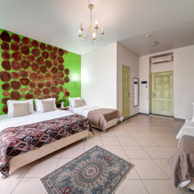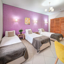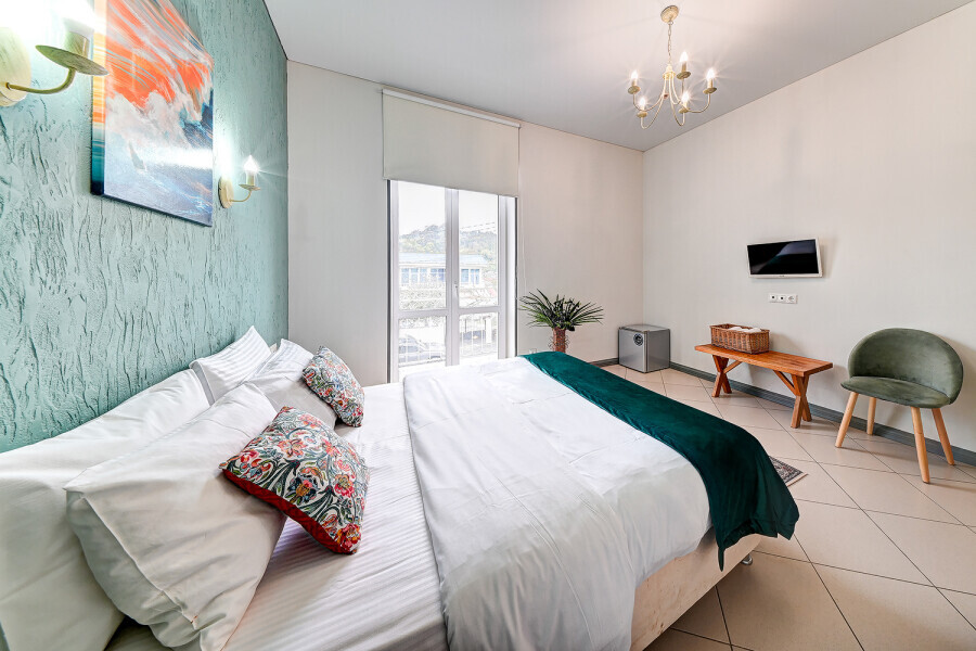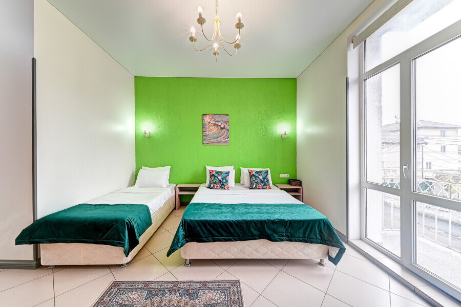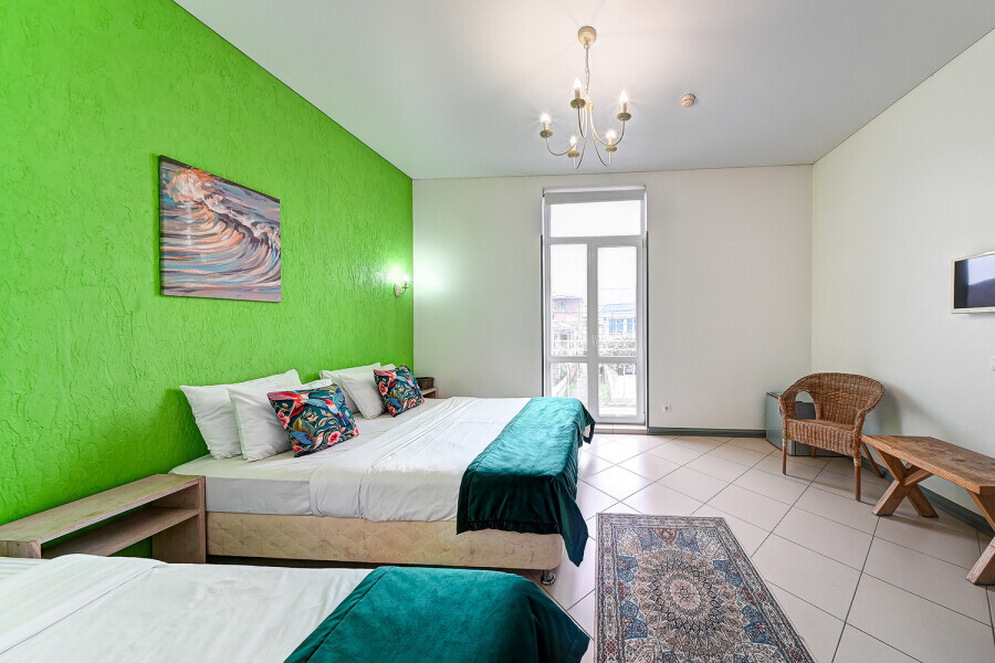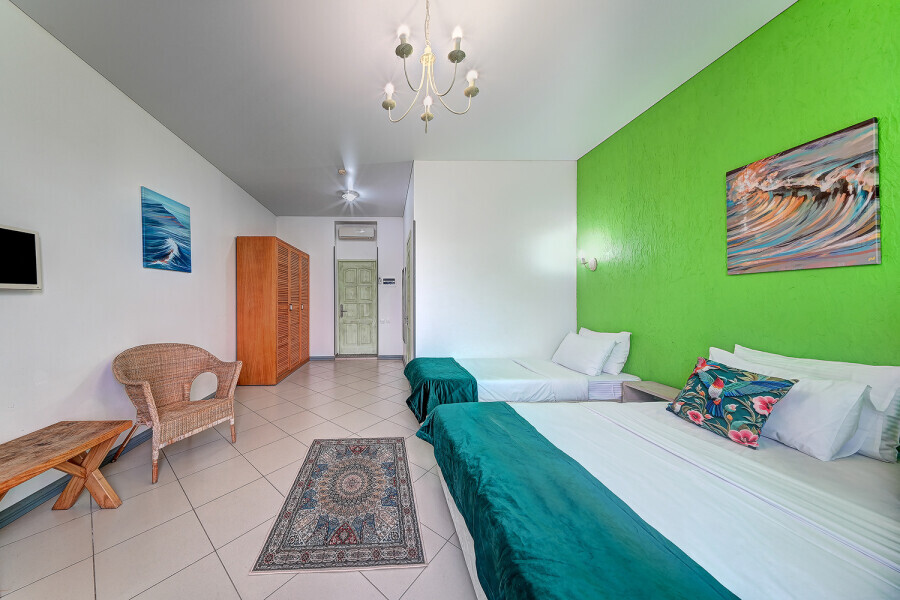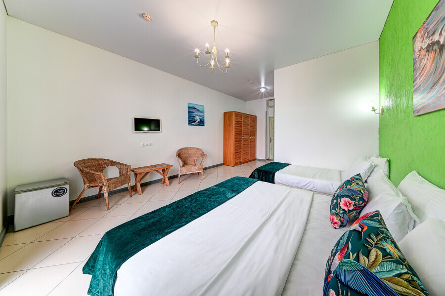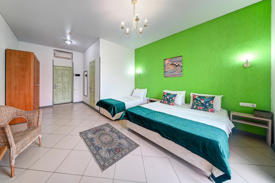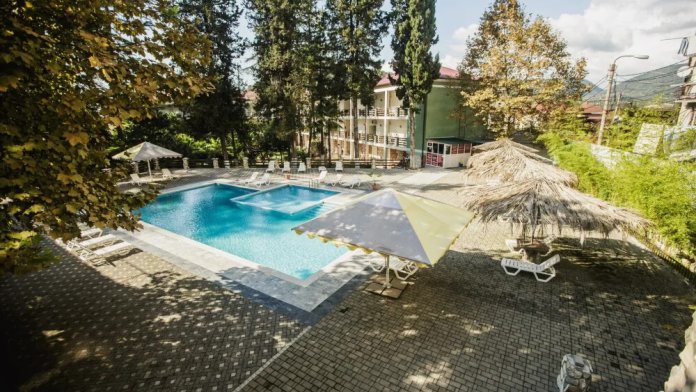 Закрытая охраняемая территория, субтропический парк с трехэтажным гостиничным корпусом, прогулочными дорожками и беседками. В нашем комплексе Вас ждёт прекрасно оборудованная аква-зона с бассейном и отдельной детской чашей. Для вашего удобства установлены комфортабельные шезлонги и солнцезащитные зонтики. В пакет услуг включено всё необходимое для пляжного отдыха: шезлонги и полотенца предоставляются бесплатно.
