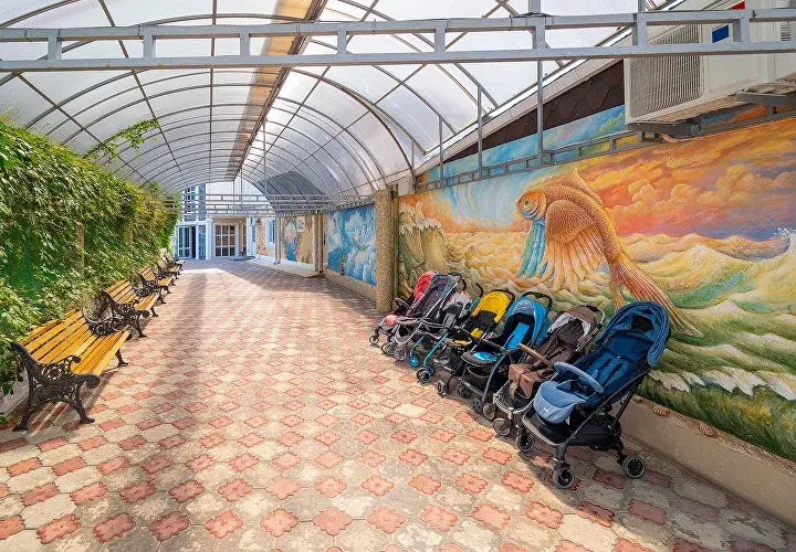 В детском игровом клубе «Да. Детки.» маленьких гостей ждут разнообразные развлечения, позволяя мамам наслаждаться отдыхом, пока их дети играют под присмотром наших нянь. В специально оборудованной игровой комнате, наши опытные и заботливые няни начинают свой рабочий день в 10 утра, проводя различные игры, обучающие мастер-классы, спортивные соревнования и многое другое. Также на территории нашего отеля есть открытая детская площадка с гигантскими динозаврами, которые уже завоевали любовь наших маленьких туристов.