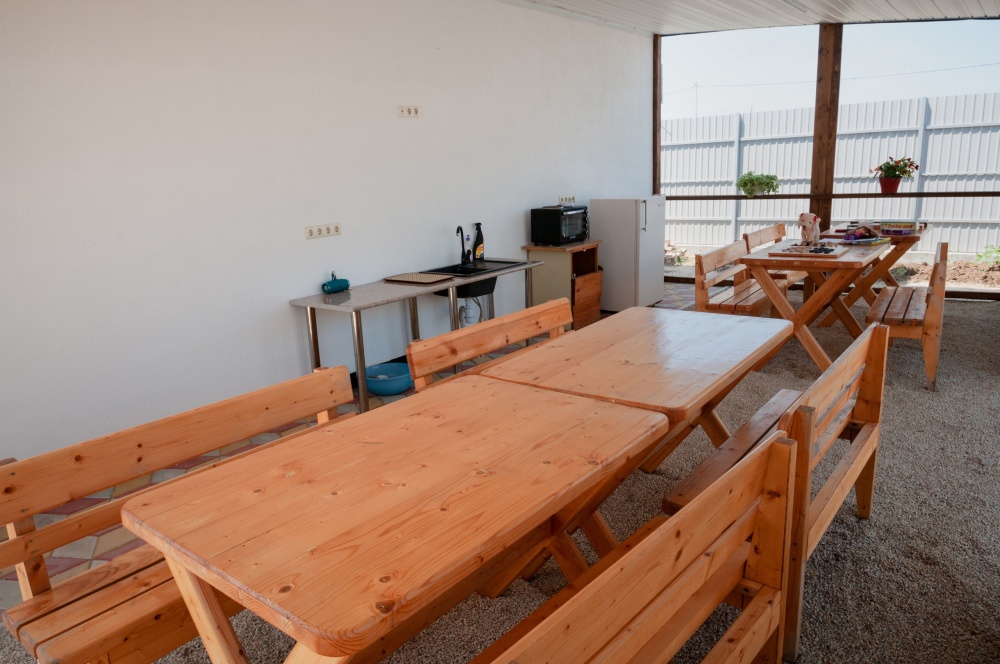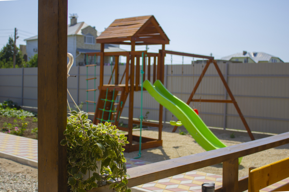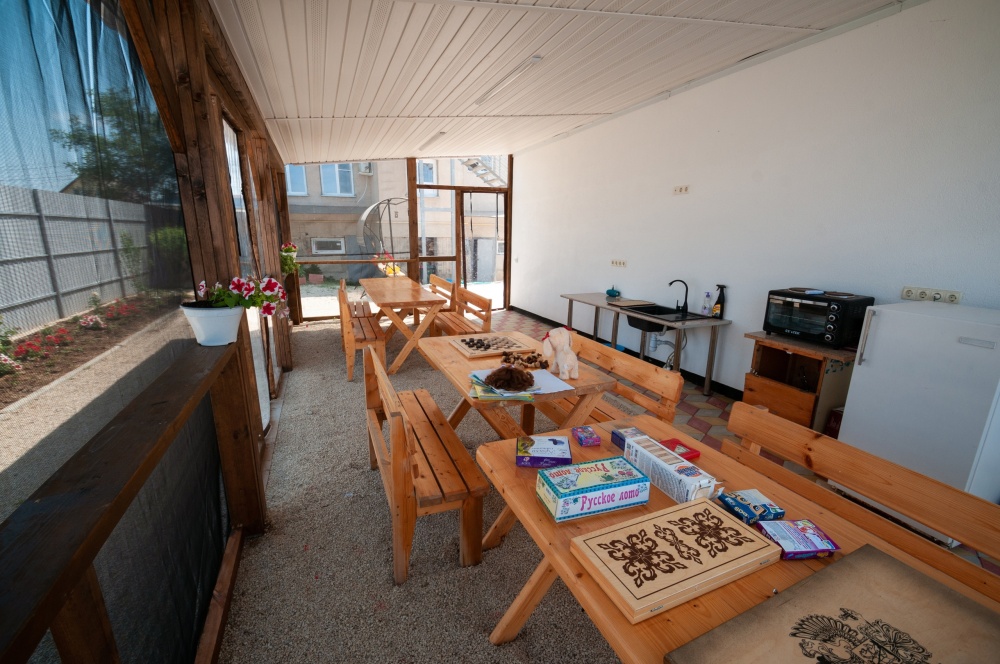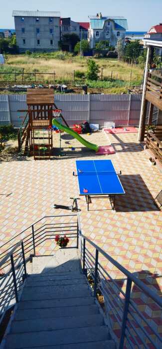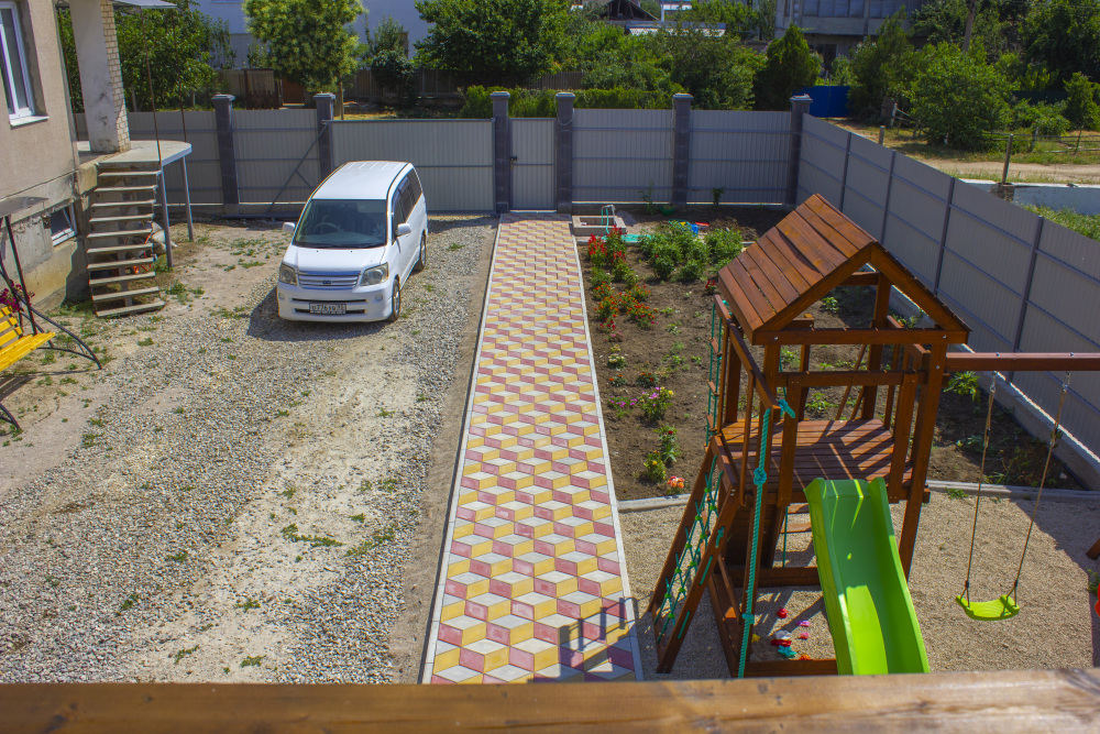 Если Вы путешествуете по Крыму на автомобиле, то около гостевого дома есть парковка, где можно припарковать свой автомобиль на время отдыха. На территории есть небольшая детская площадка с игрушками для развлечения детей, стол для настольного тенниса, аэрохоккей, батут и даже небольшой детский бассейн. Уличная кухня с мангалом и большими столами, где часто собираются гости и совместно проводят время играя в настольные игры, готовя или просто общаясь.