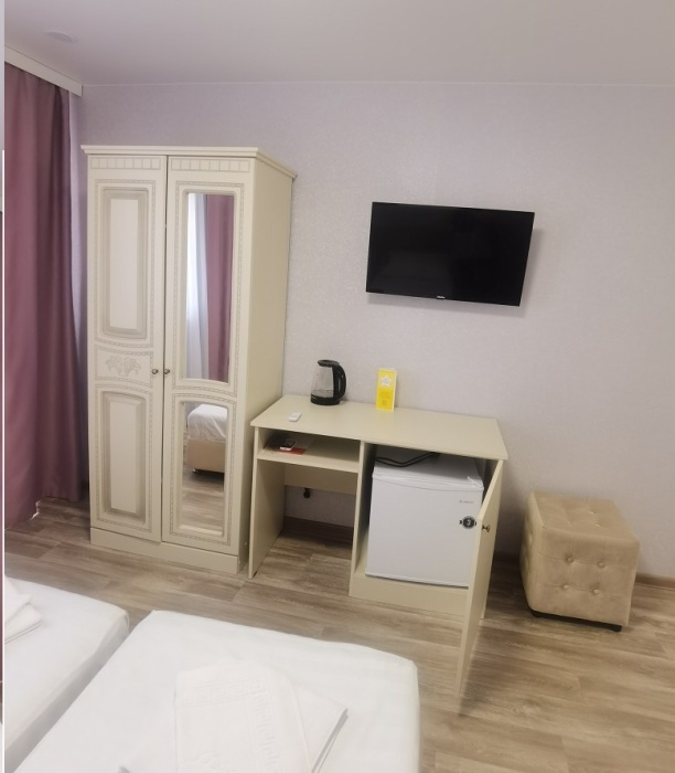 В гостевом доме полноценные, закрытые номера со всей необходимой, исправной мебелью и техникой, все номера закрываются на ключ, ловит бесплатный Wi-Fi, а к телевизорам подключено спутниковое ТВ с множеством детских и спортивных каналов.