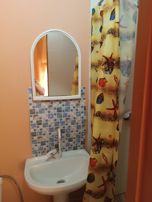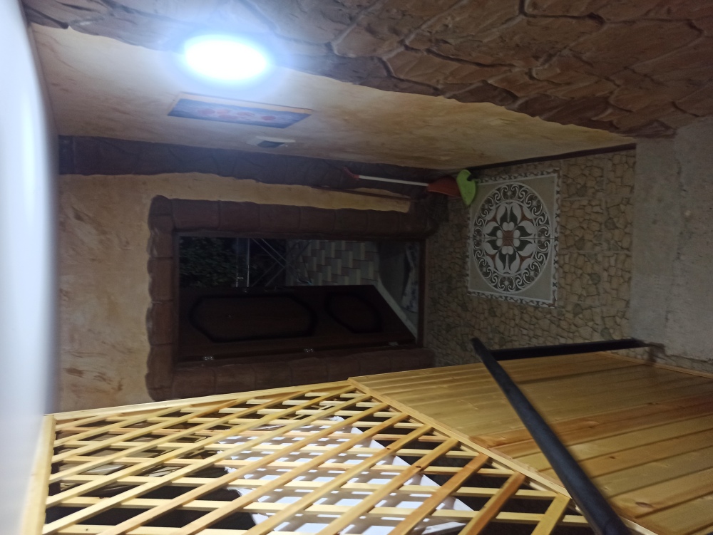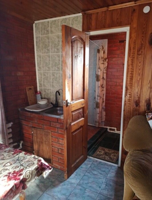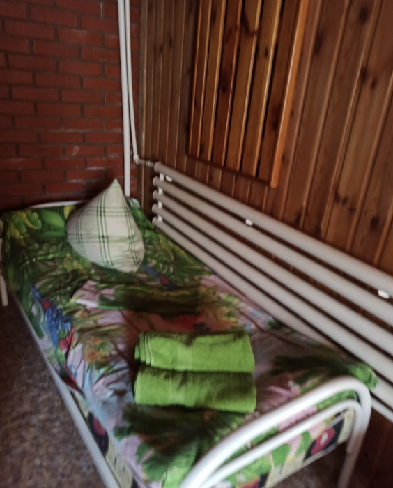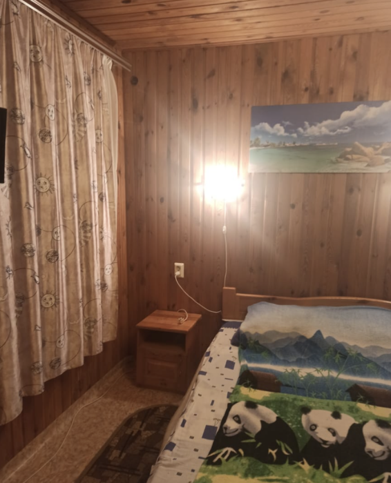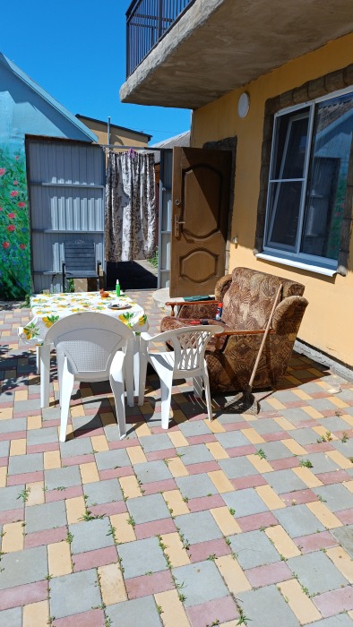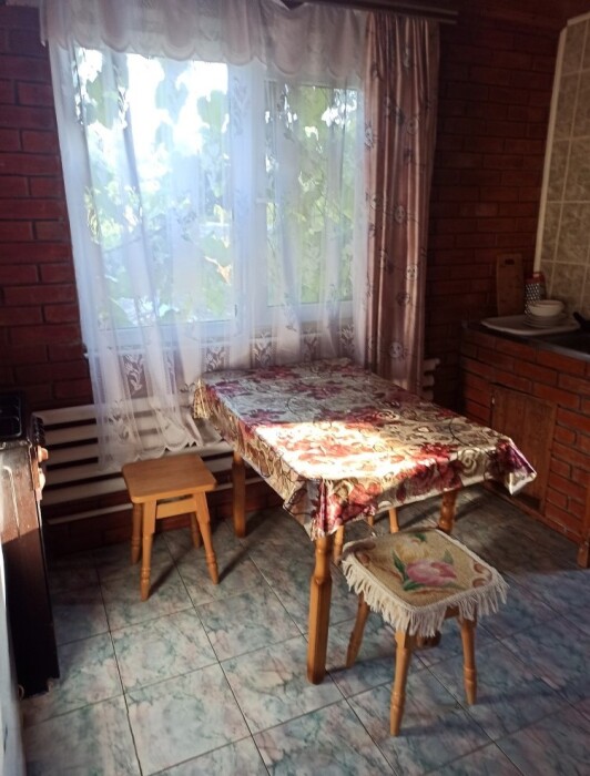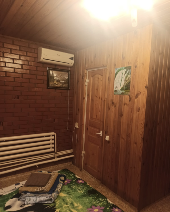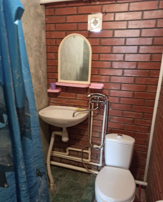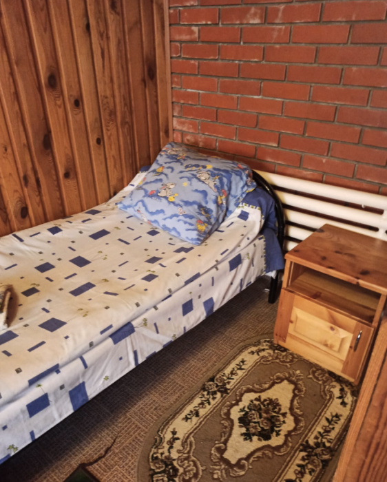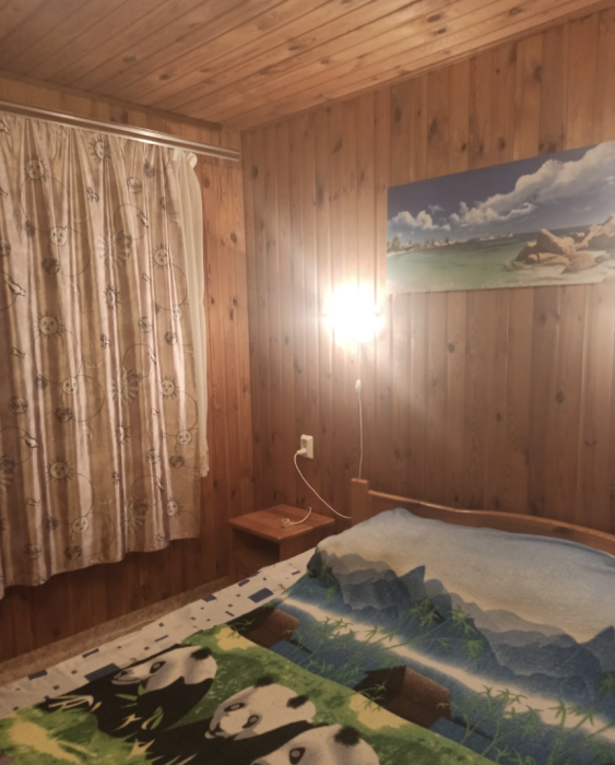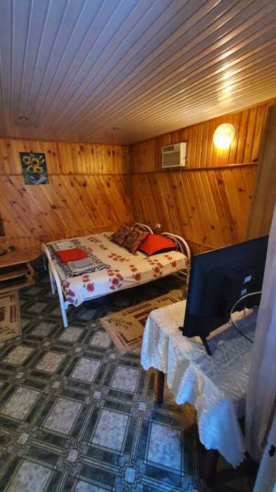 4-местный номер со всеми удобствами, на 1 этаже кирпичного дома: душ, туалет, кухня, посуда, холодильник, ТВ, сплит система, всё есть, стол на улице. А также детская площадка и большая зона отдыха с диванами, столиками и мангалом.