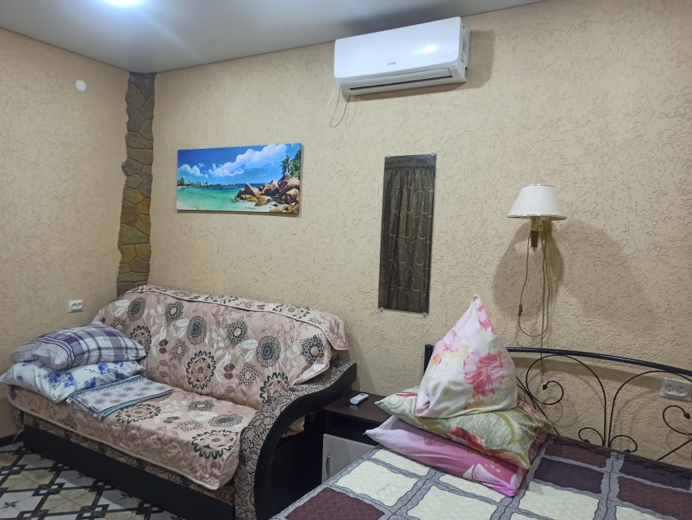 С отдельным входом, 1 местный номер в глубине двора, на 1 этаже кирпичного дома,сплит-система, холод, телевизор, для 1 человека- хороший вариант.