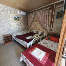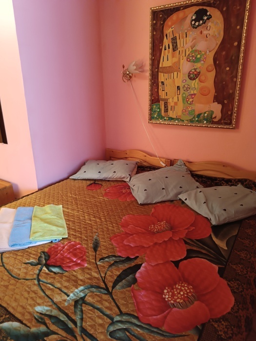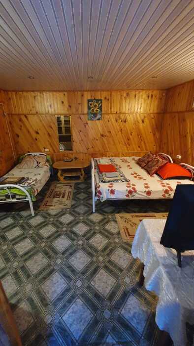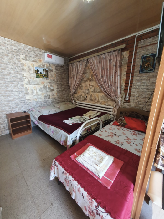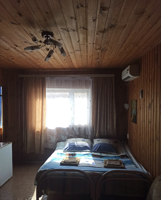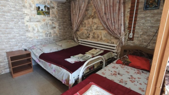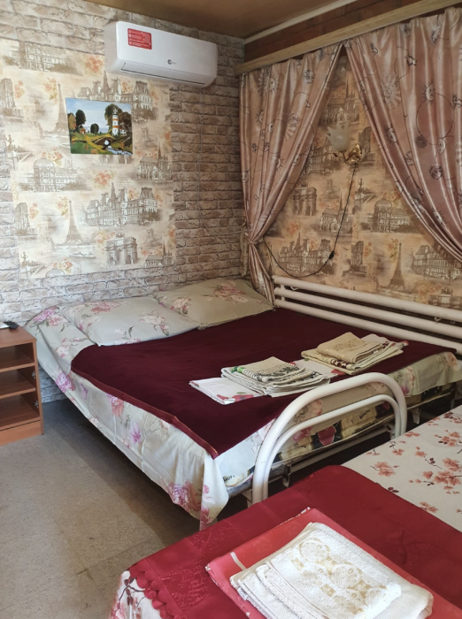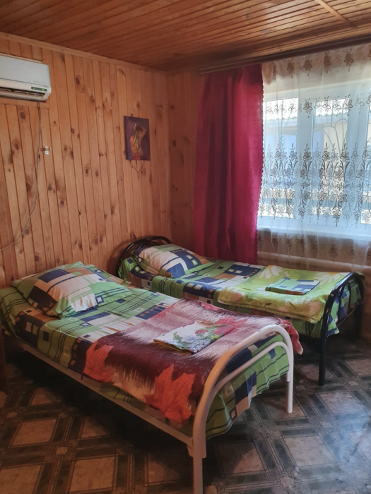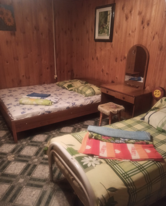 Номера разной вместимости, что подходит для любой семьи. Все номера комфортабельные, отделаны экологически чистыми материалами, в каждом номере свой душ и туалет, вода горячая круглосуточно. Телевизоры, холодильники, сплит-система, посуда, всё для Вашего удобства. На территории гостиницы есть собственный дворик с большой беседкой, мангалом и столиками, где одновременно могут отдыхать более 10 человек. Также небольшая детская площадка с качелями и песочницей.