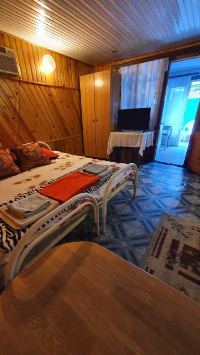 Сдается4 мест номер, в комнате2 стальная, кровать, на кухне- двухярусная, удобно родители отдельно от деток, на кухне-эл. плита, чайник, холод, раковина, в комнате ТВ, сплит-система, душ туалет