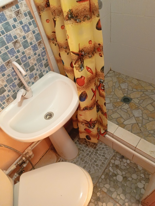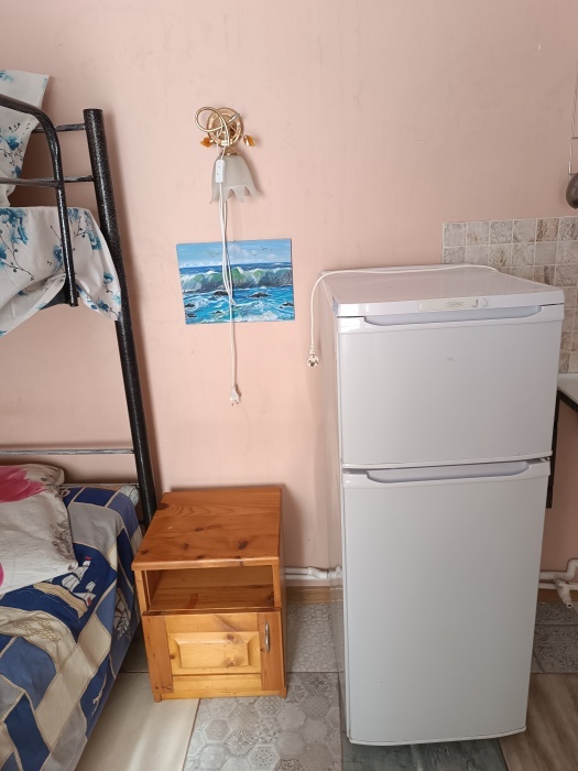 Прекрасный номер для 2 человек с раздельными односпальными кроватями. Душ, туалет в номере, кухня большая, рядом, за стенкой, на 4 номера, газ, холодильники, посуда, микроволновка.