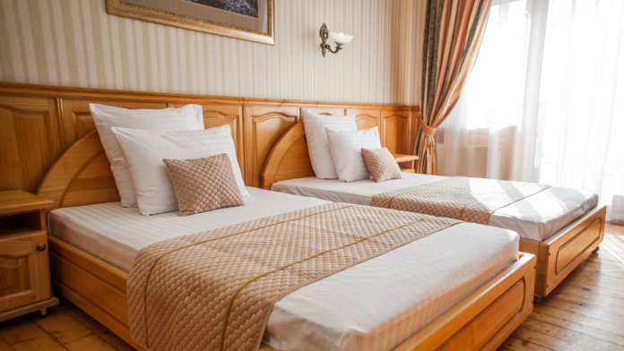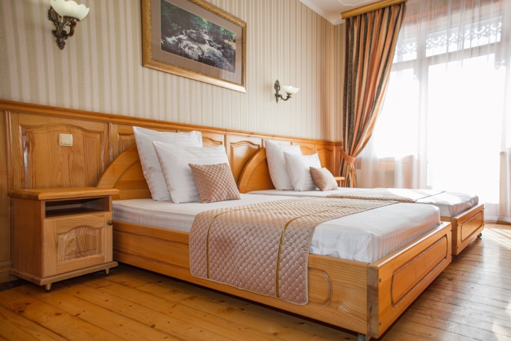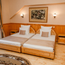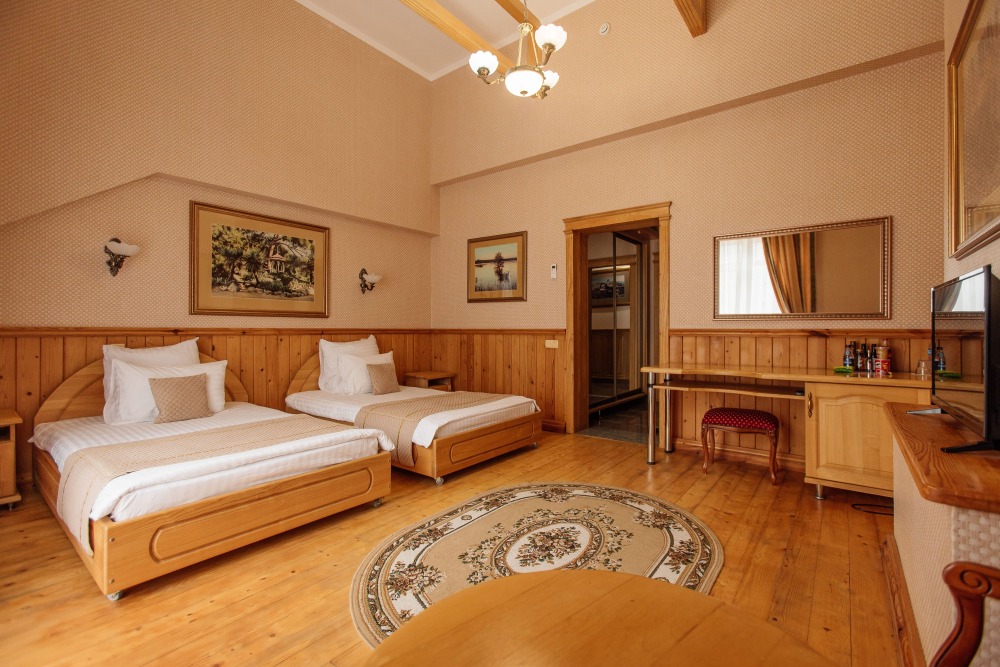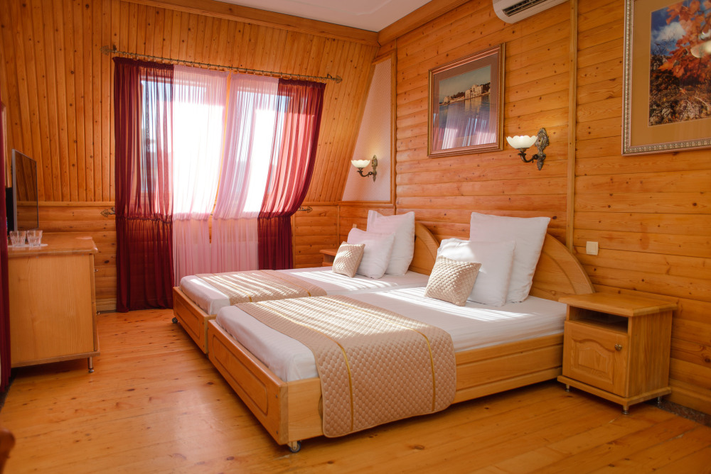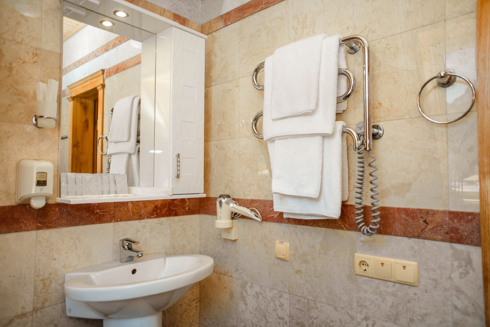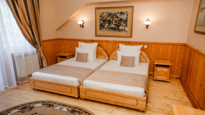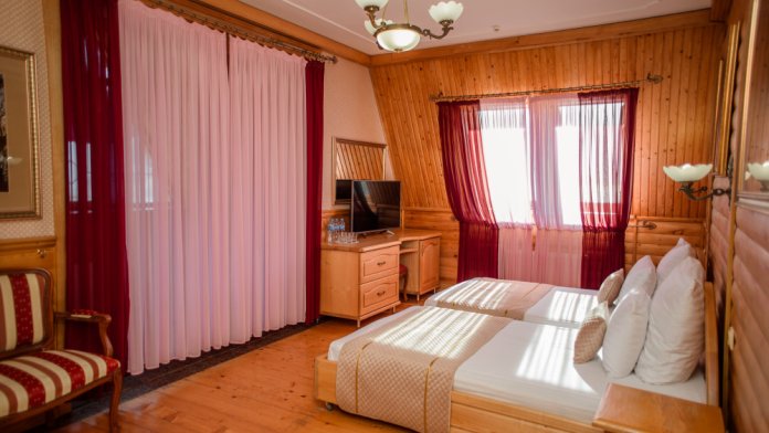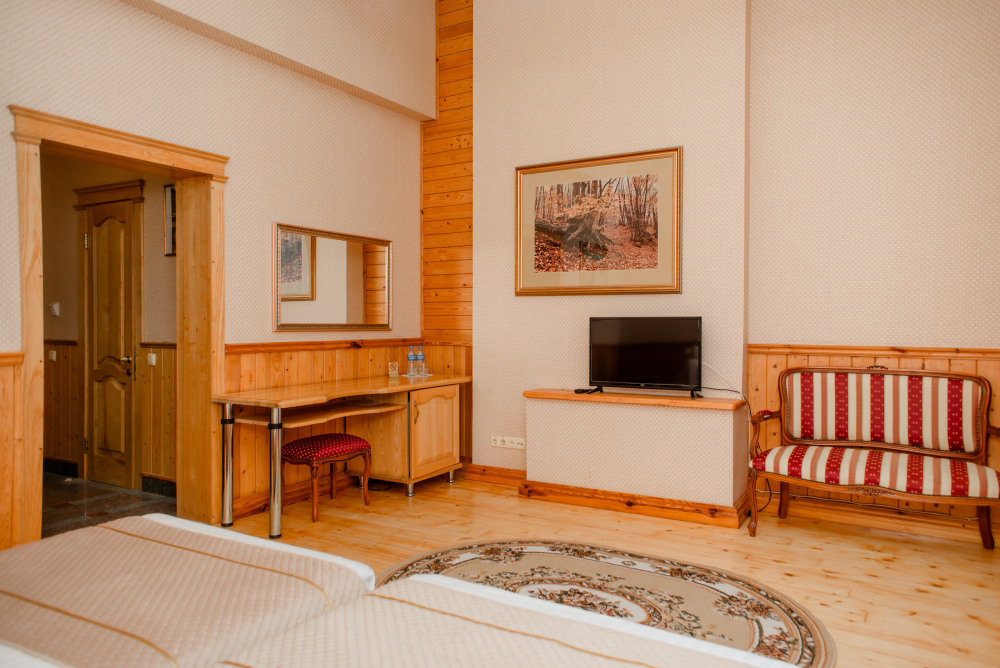 Двухместный номер улучшенной планировки с двумя раздельными кроватями и видом на горы. Идеально подходит для двухместного размещения. В каждом номере имеется балкон с мебелью, санузел с ванной, вместительный шкаф-купе с зеркальными дверями, кондиционер, мини-бар, сейф, фен, кабельное телевидение, телефон.