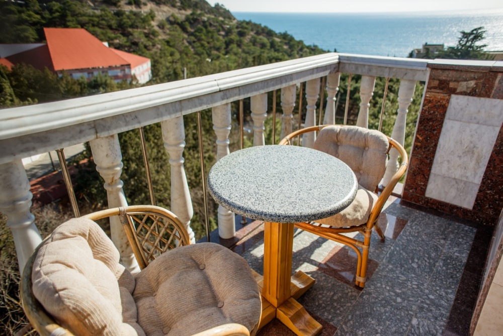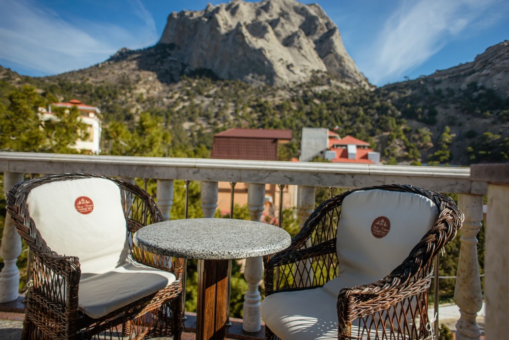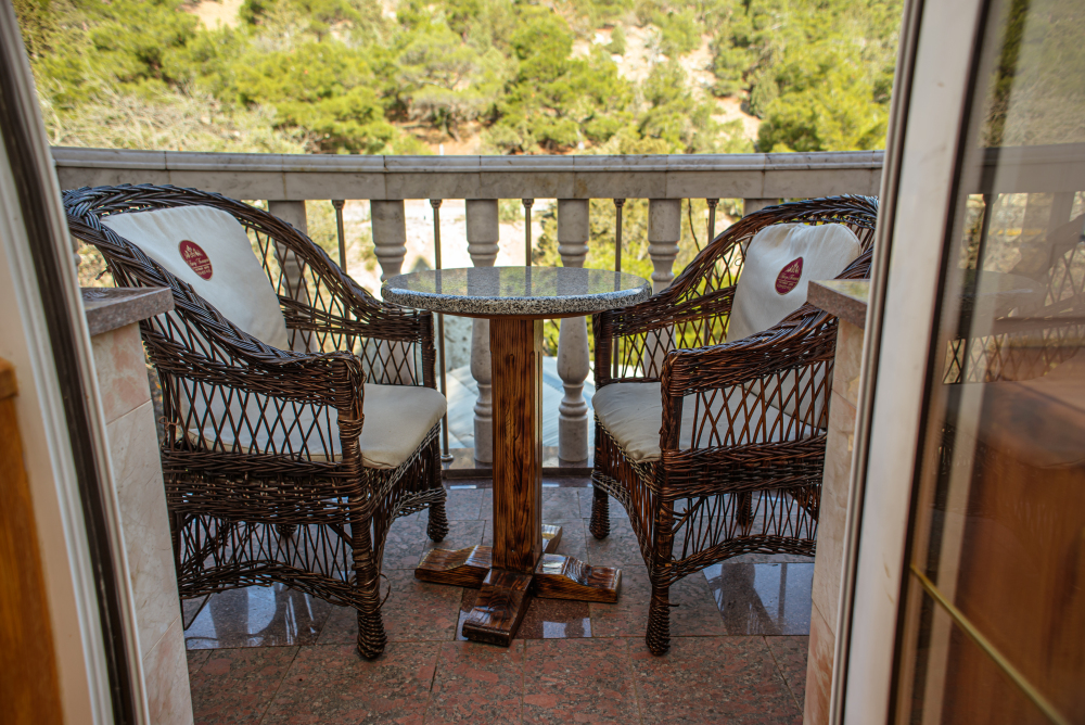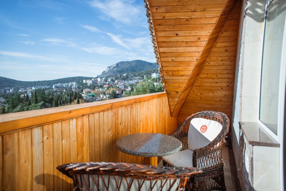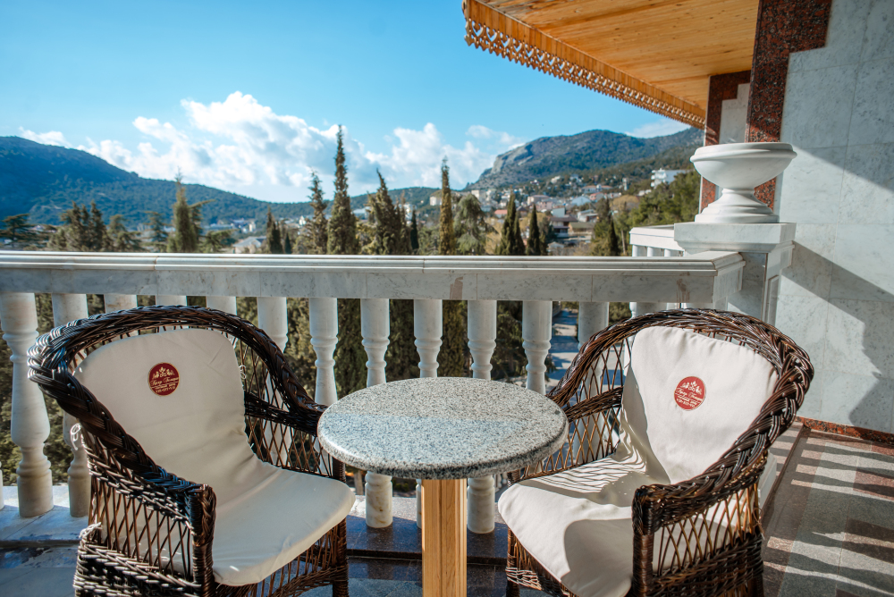 Лев Голицын – двухуровневый трехкомнатный люкс с балконом и великолепным видом на море. На первом этаже – уютная гостиная, куда можно пригласить друзей. На втором этаже - спальня с двуспальной кроватью, и светлый кабинет, из окон которого открывается вид на бухту Нового Света.