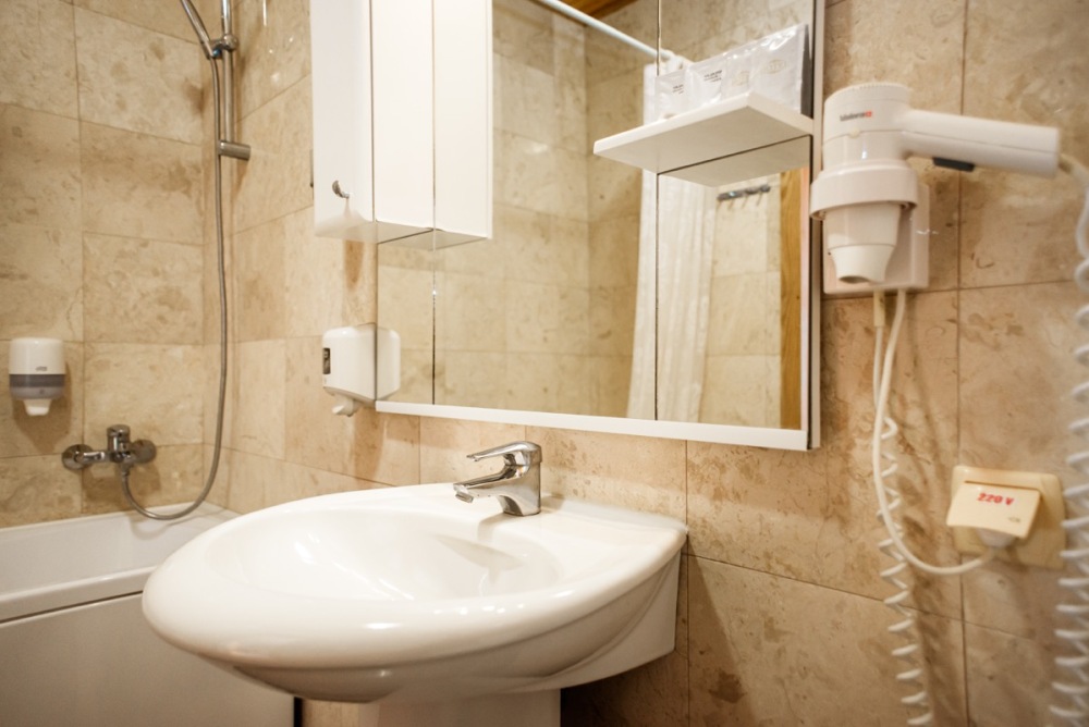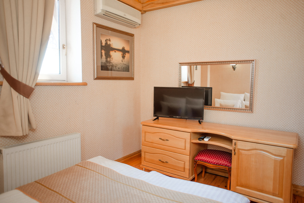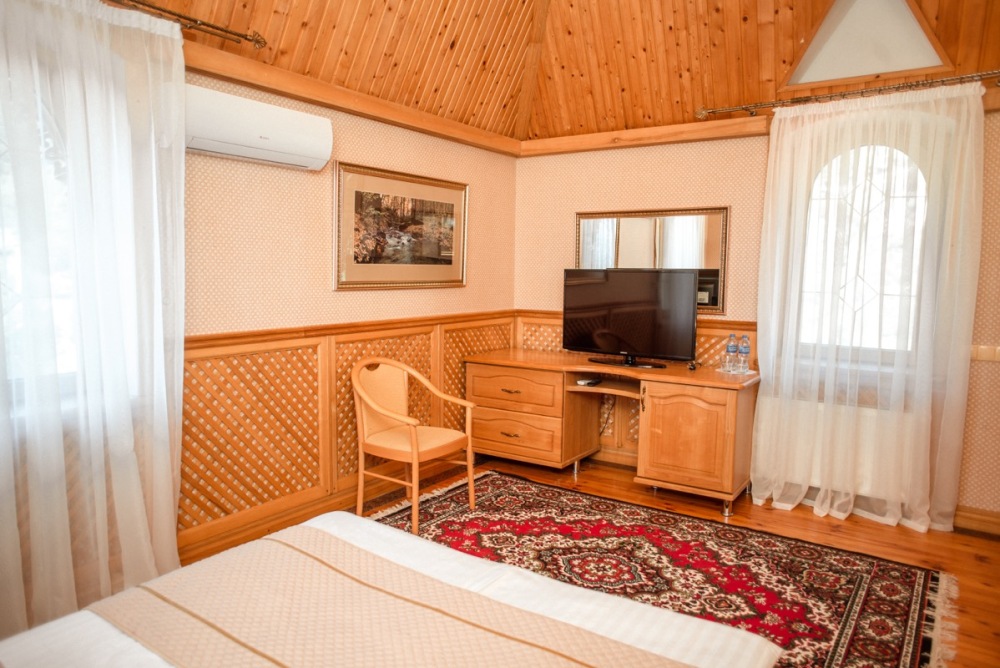 Однокомнатный уютный номер с двумя раздельными кроватями и видом на горы. Идеально подходит для одноместного или двухместного размещения. В каждом номере имеется балкон с мебелью, санузел с душевой кабиной, вместительный шкаф-купе с зеркальными дверями, кондиционер, мини-бар, сейф, фен, кабельное телевидение, телефон.