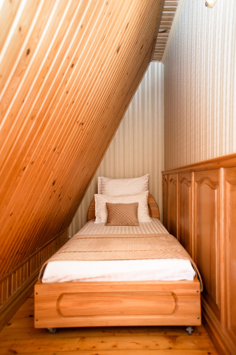 На втором – уютная спальня с двуспальной кроватью, санузел с ванной.