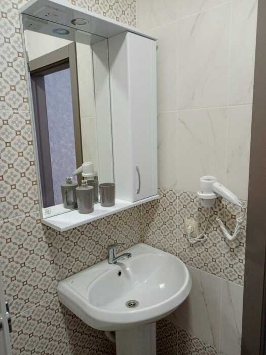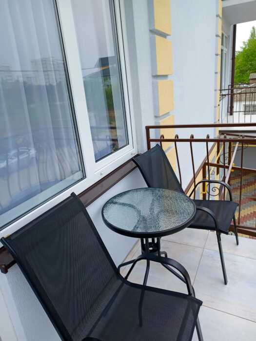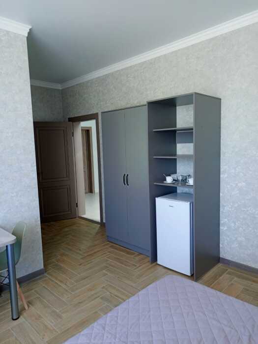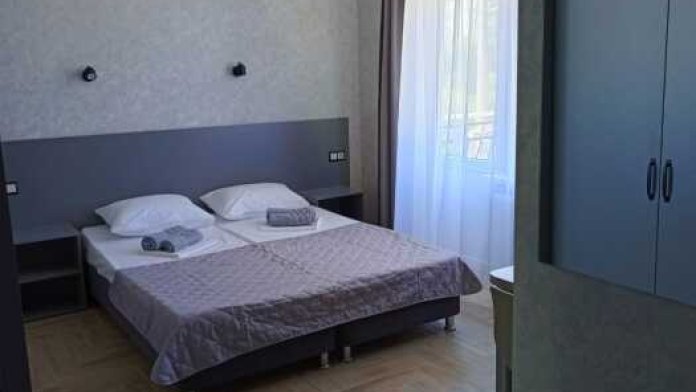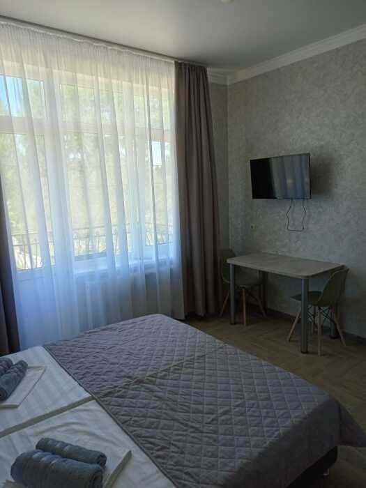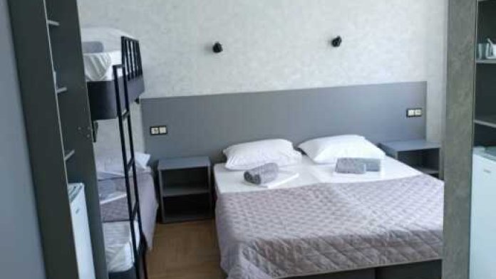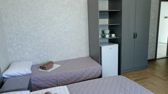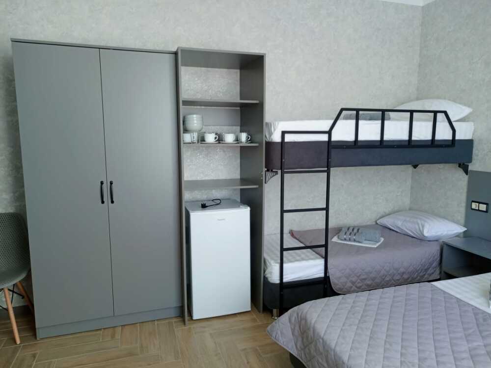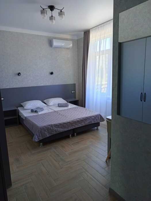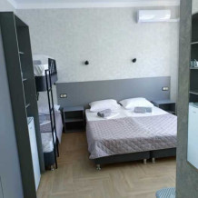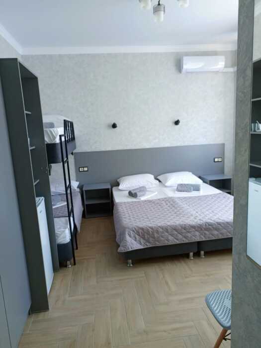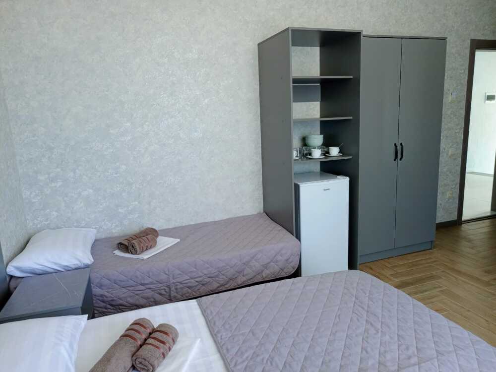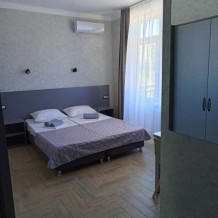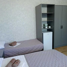 Номера расположены на 2-3 этажах, всего 8 номеров: 2-местные, 3-местные, 4-местные. Номера с постельным бельем х/б страйп-сатин, полотенца банные и лицевые. Кухни находятся на каждом этаже (на 4 номера). Все номера оснащены: кровати бокс-спринг, прикроватные тумбочки, ТВ, холодильник, стол, стулья, шкаф, кондиционер, шторы блэкаут, зеркало, посуда индивидуальная. В ванных комнатах: душевая кабина, гигиенический душ, фен, туалетные принадлежности. Во всех номерах имеется балкон со столиком, стульями, сушилкой для белья. 4х-местный номер с двухъярусной кроватью.