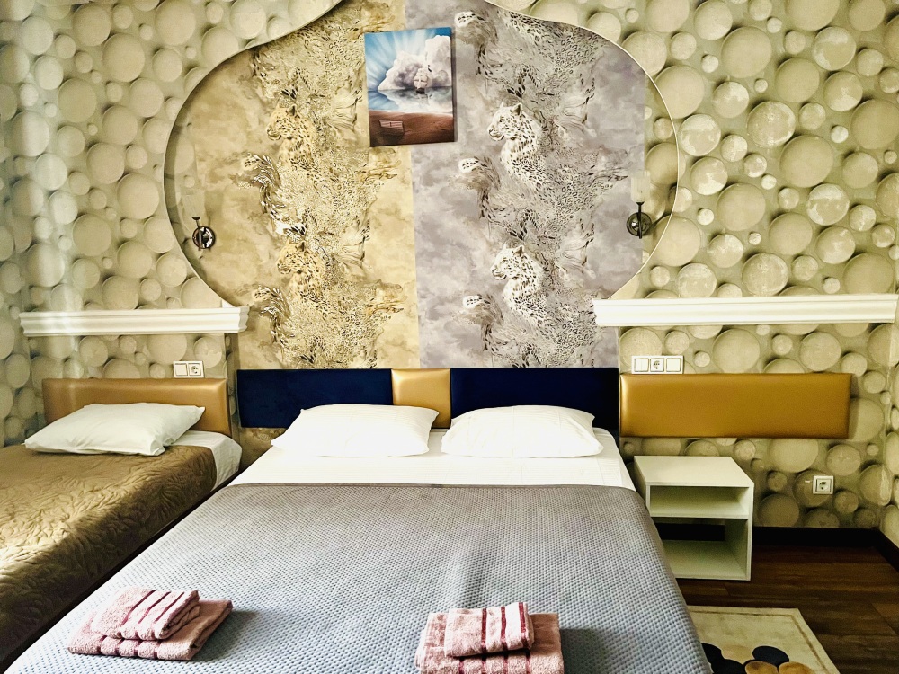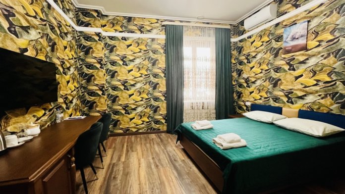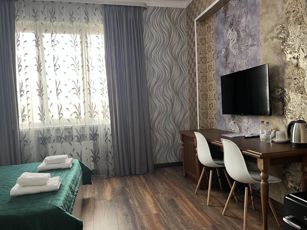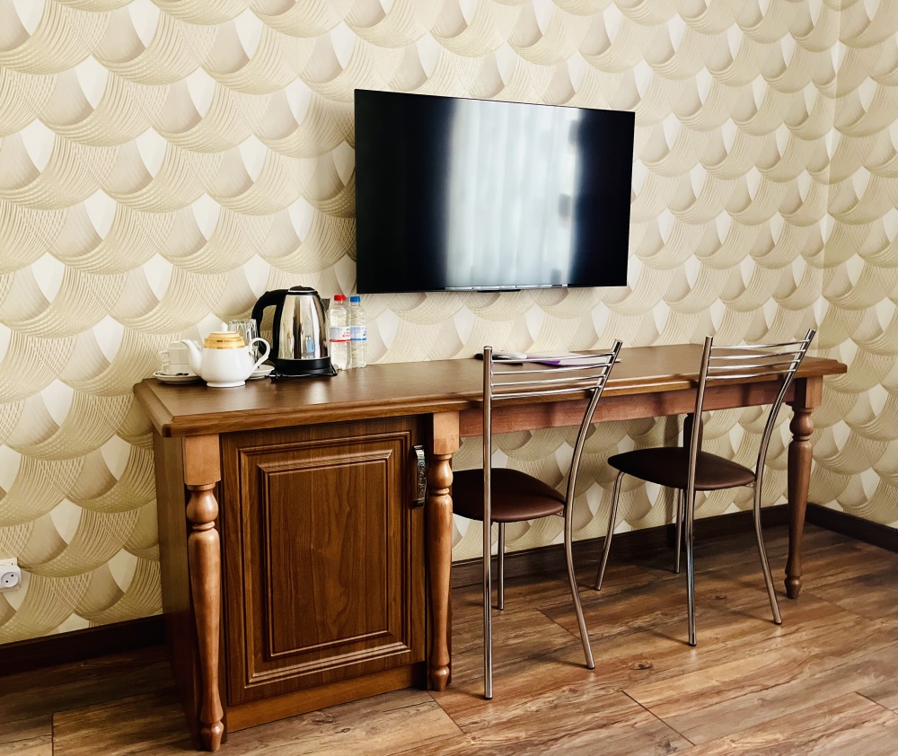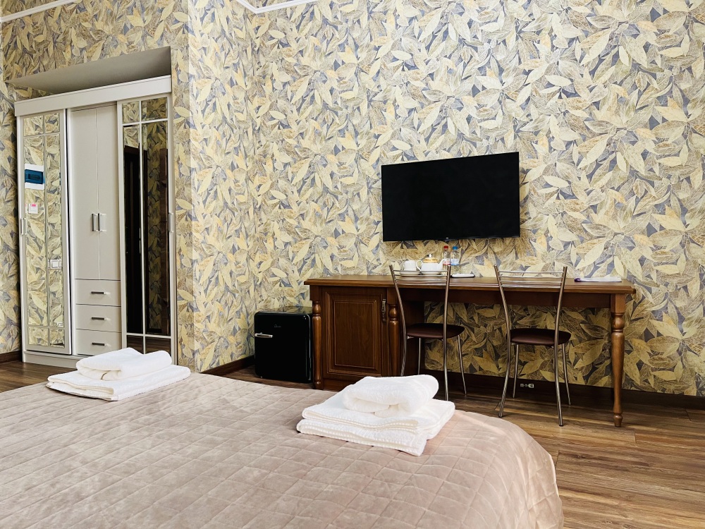 К заселению гостей подготовлены уютные номера, укомплектованные необходимыми удобствами для комфортного отдыха. В каждом из них установлен телевизор, имеется собственный санузел с душевой кабиной, рабочая зона и стабильный Wi-Fi с возможностью бесплатного подключения. Предусмотрены средства личной гигиены, полотенца и тапочки.