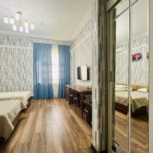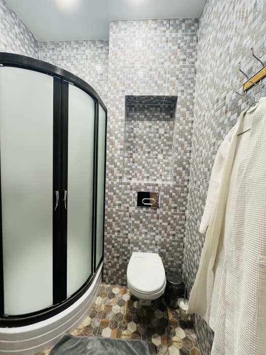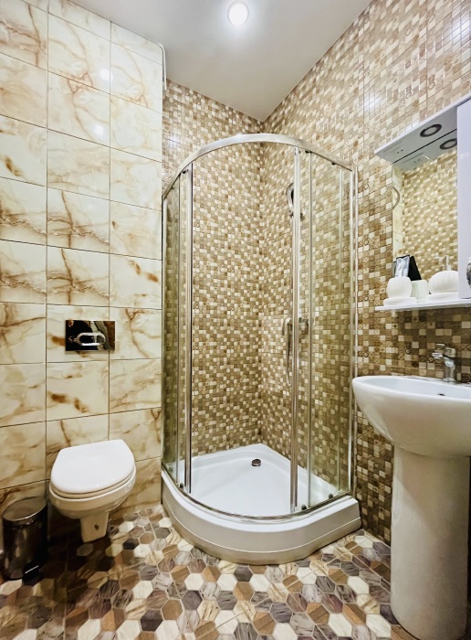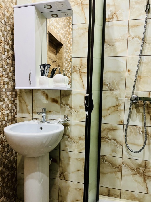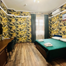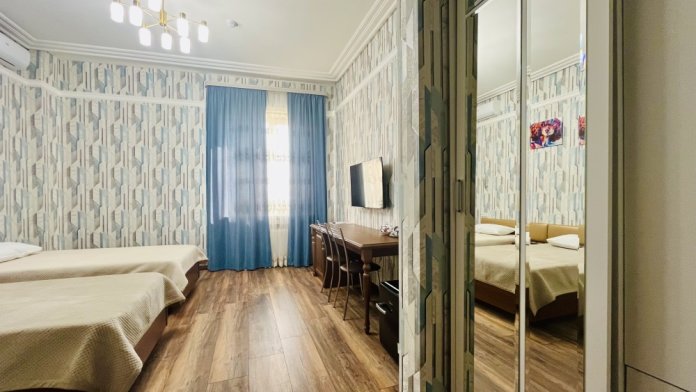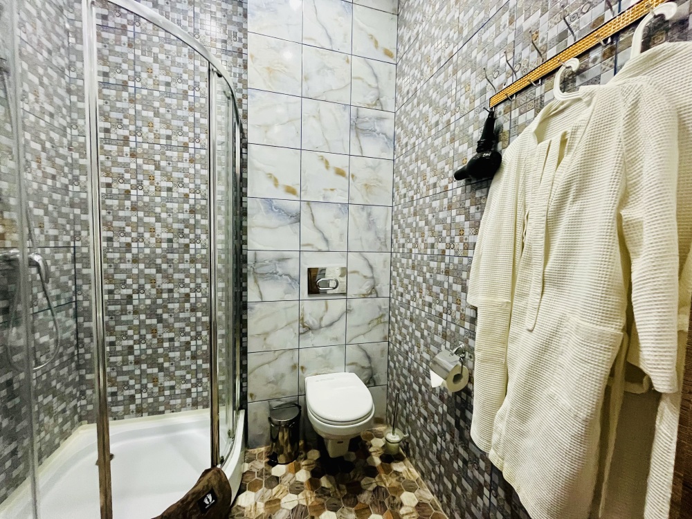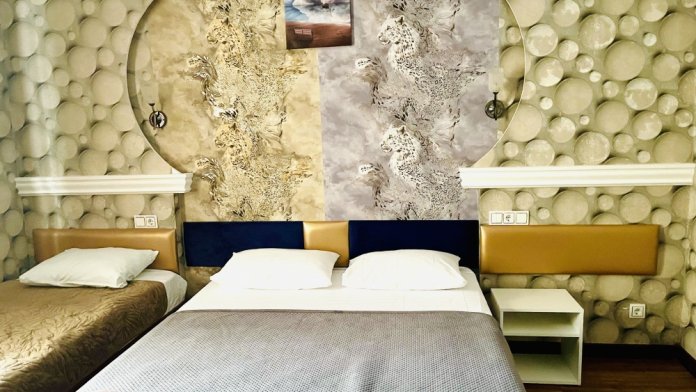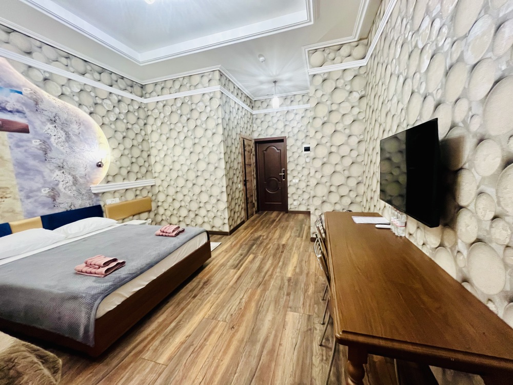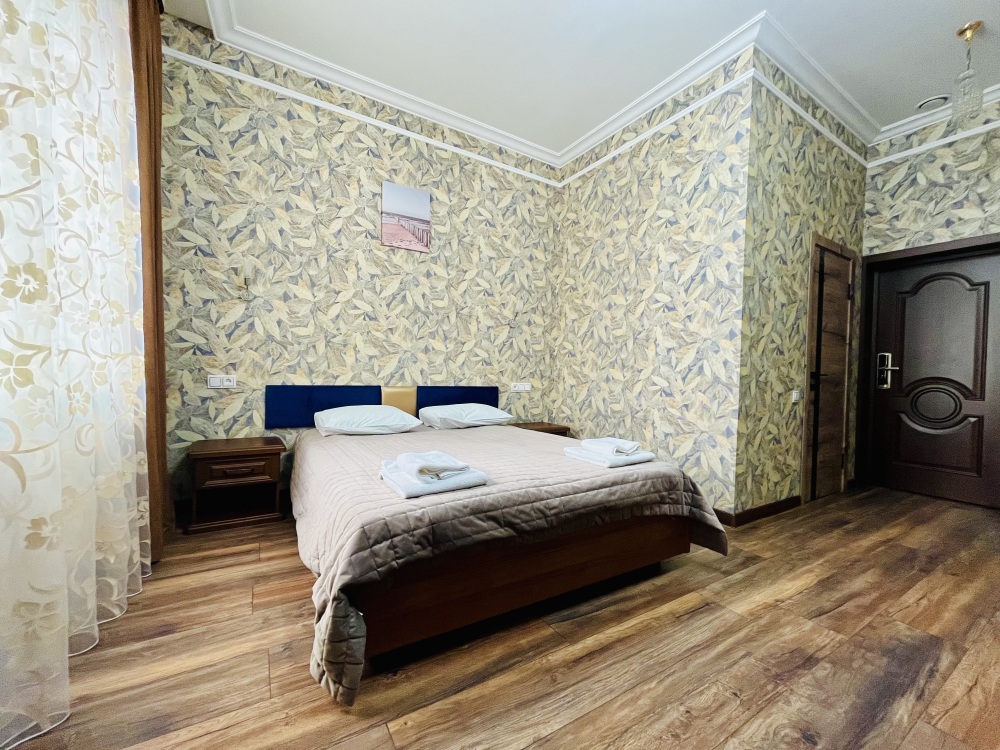 К заселению гостей подготовлены уютные номера, укомплектованные необходимыми удобствами для комфортного отдыха. В каждом из них установлен телевизор, имеется собственный санузел с душевой кабиной, рабочая зона и стабильный Wi-Fi с возможностью бесплатного подключения. Предусмотрены средства личной гигиены, полотенца и тапочки.