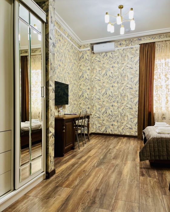 Апартаменты оснащены всем необходимым для комфортного проживания гостей. В апартаментах имеются двуспальная кровать, телевизор, высокоскоростной Wi-Fi, сплит-система, мини-холодильник, светильники, оборудованная кухня (варочная поверхность, посуда, обеденный стол, мойка, гарнитур), оборудованная ванная комната, индивидуальные ванные принадлежности, шкаф, прикроватные тумбочки, гардеробная, сейф.