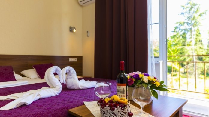 Отель «Лазурь Абхазия» располагается в поселке Гечрипш.