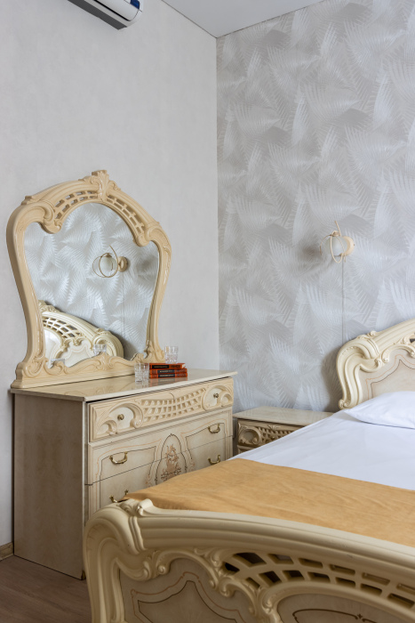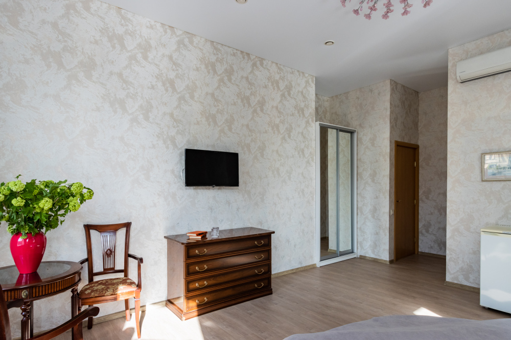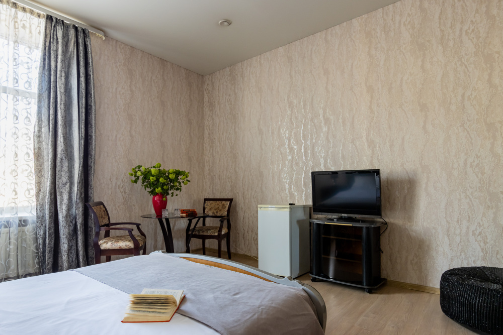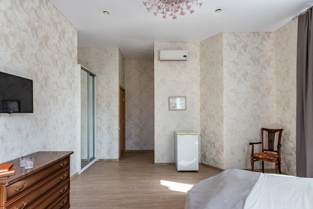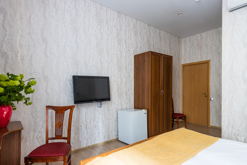Номер оснащен всем необходимым для комфортного проживания: двуспальная кровать, высокоскоростной Wi-Fi, телевизор, кондиционер, шкаф, рабочее пространство, светонепроницаемые шторы, чистое и свежее постельное бельё и полотенца, фен, туалетно-косметические принадлежности, оборудованная ванная комната.