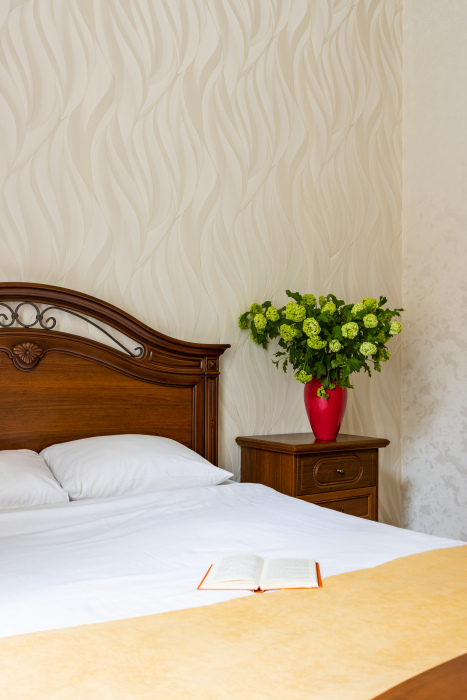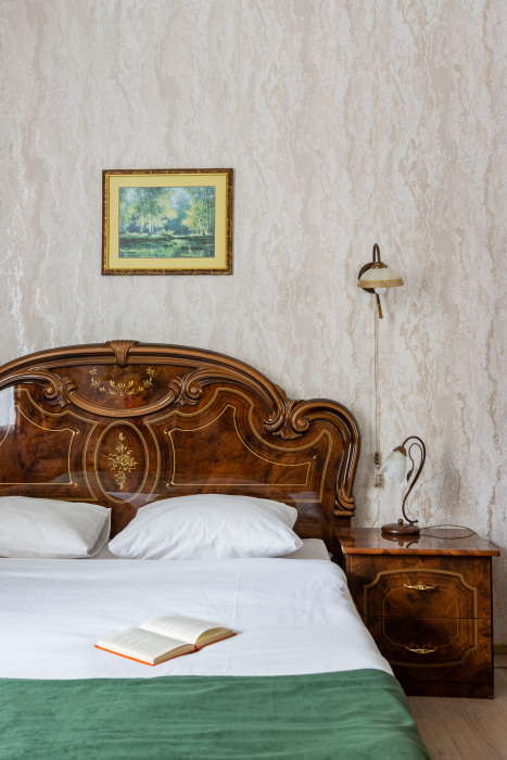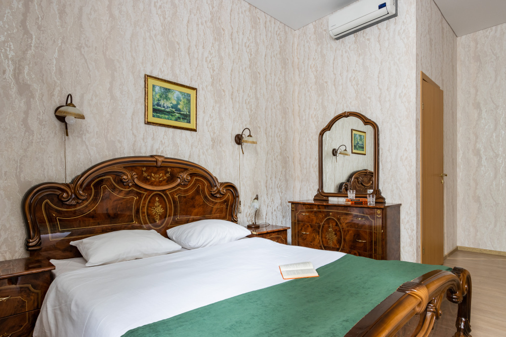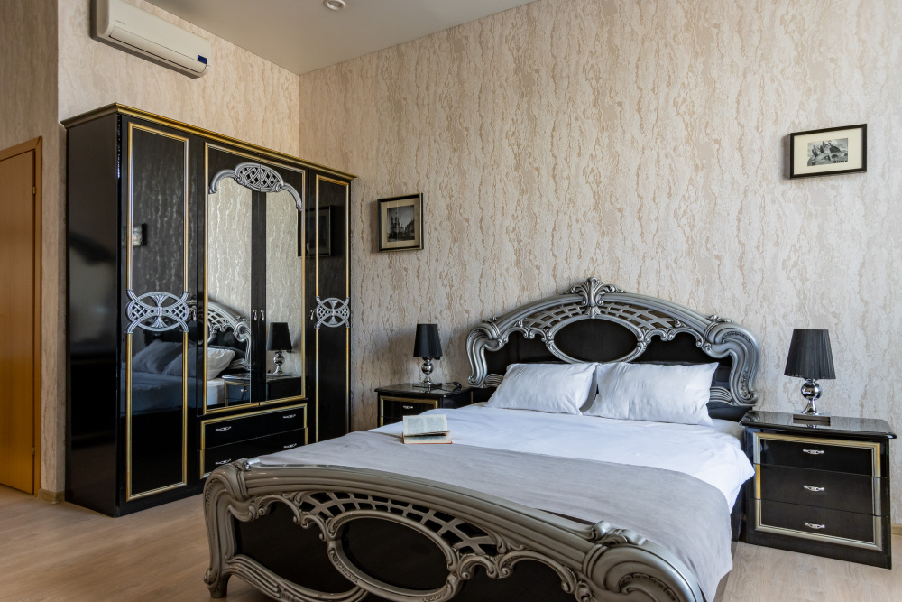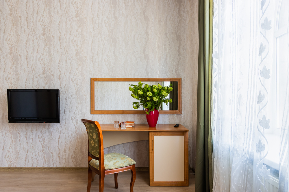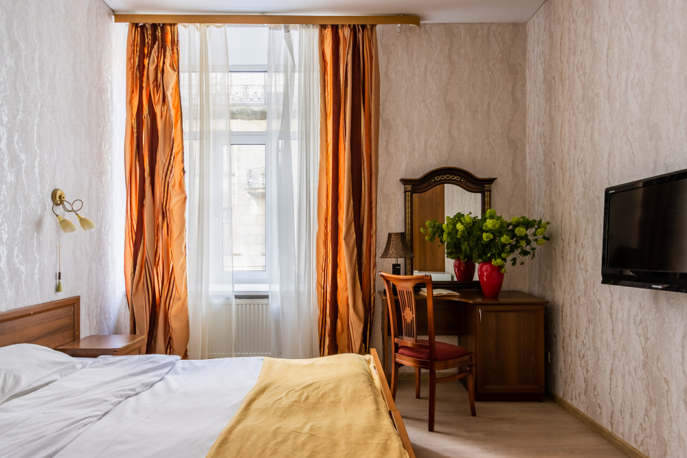 Номер оснащен всем необходимым для комфортного проживания: двуспальная кровать, высокоскоростной Wi-Fi, телевизор, кондиционер, шкаф, рабочее пространство, светонепроницаемые шторы, чистое и свежее постельное бельё и полотенца, фен, туалетно-косметические принадлежности, оборудованная ванная комната.