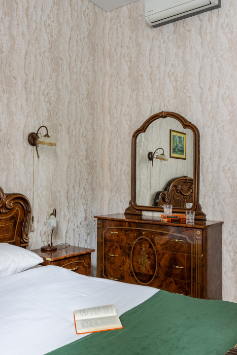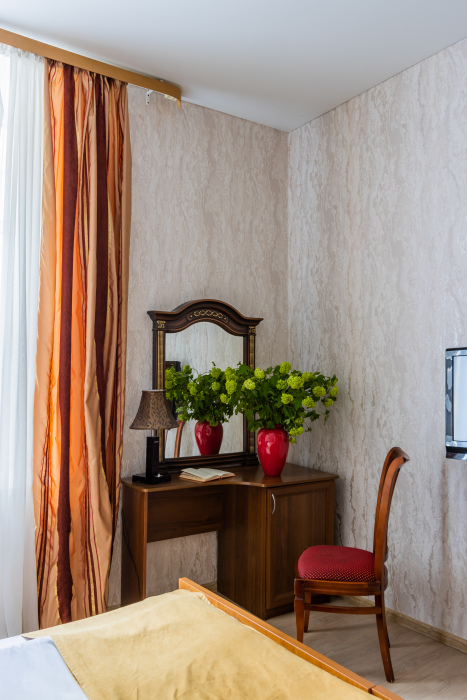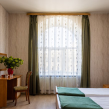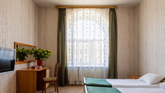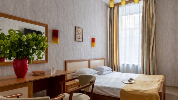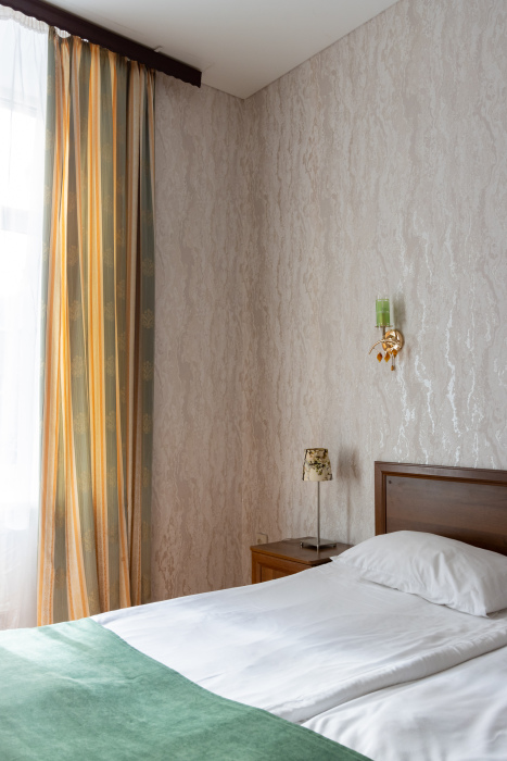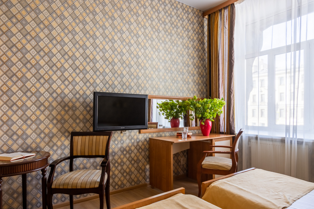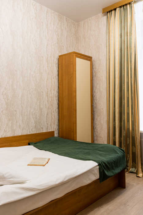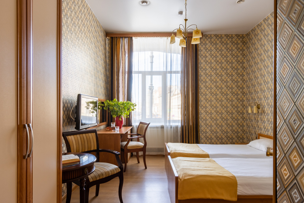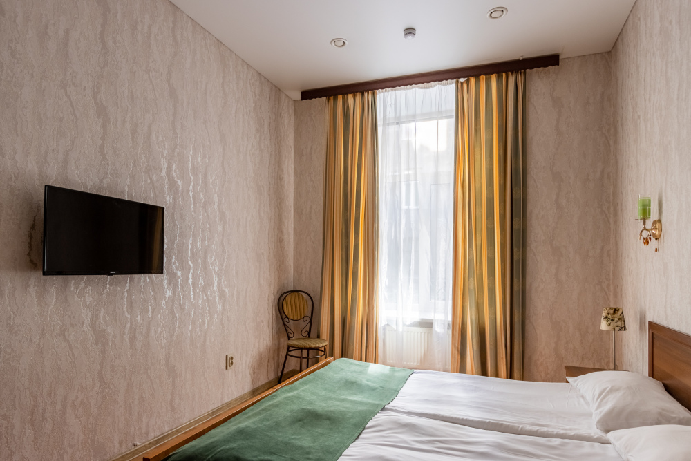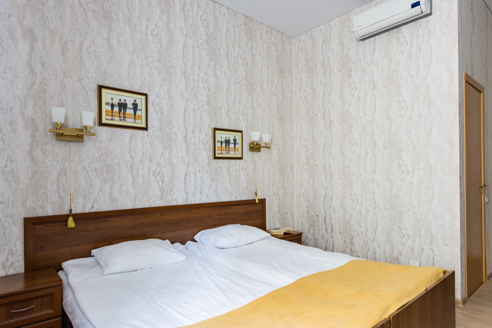 Номер оснащён всем необходимым для комфортного проживания: две односпальные кровати, высокоскоростной Wi-Fi, телевизор, кондиционер, шкаф, рабочее пространство, светонепроницаемые шторы, чистое и свежее постельное бельё и полотенца, фен, туалетно-косметические принадлежности, оборудованная ванная комната.