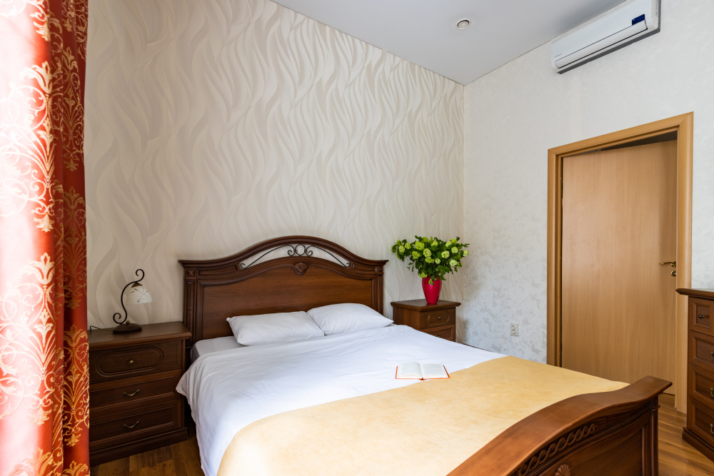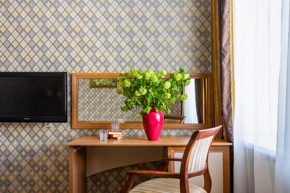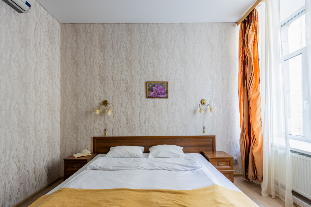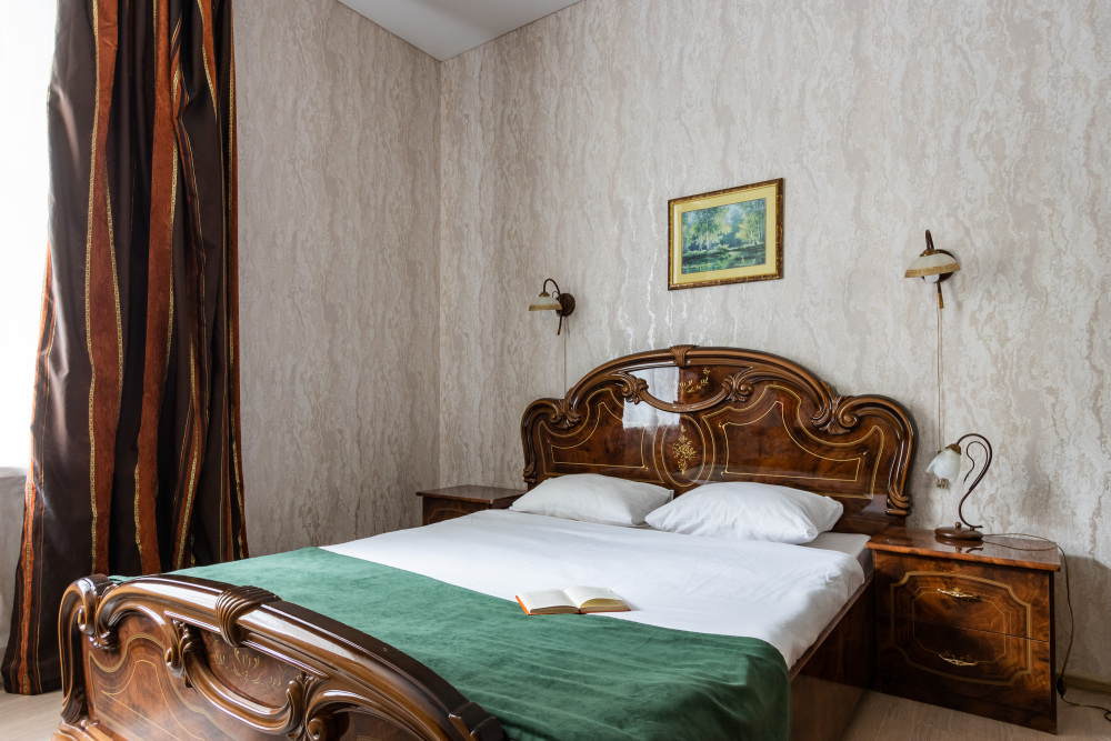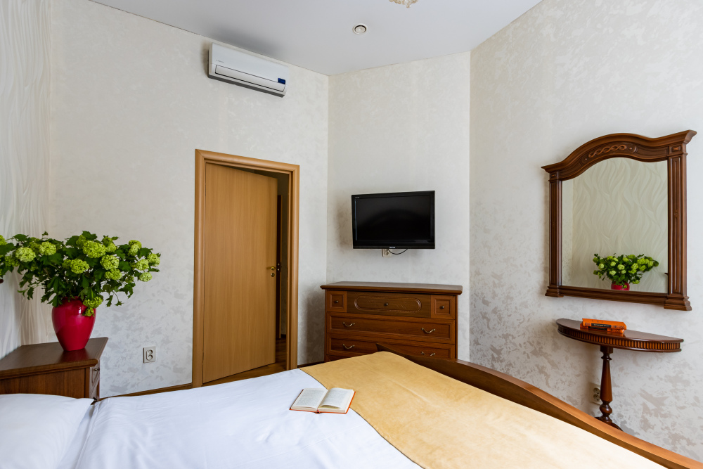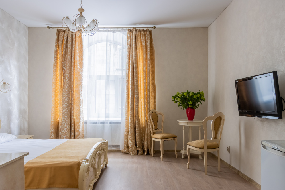 Номер оснащён всем необходимым для комфортного проживания: двуспальная кровать, высокоскоростной Wi-Fi, телевизор, кондиционер, шкаф, рабочее пространство, светонепроницаемые шторы, чистое и свежее постельное бельё и полотенца, фен, туалетно-косметические принадлежности, оборудованная ванная комната.