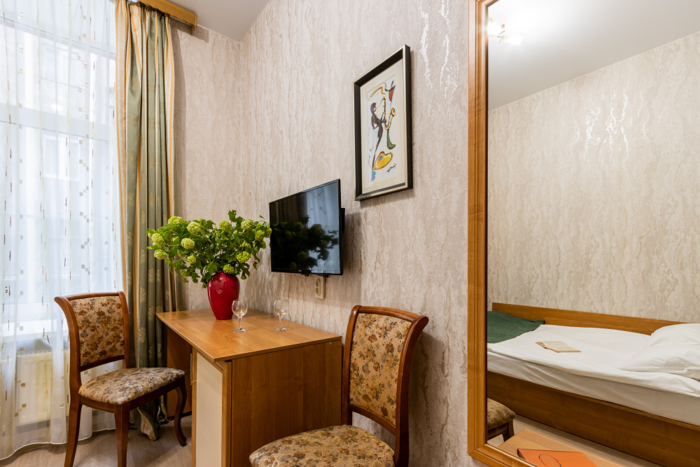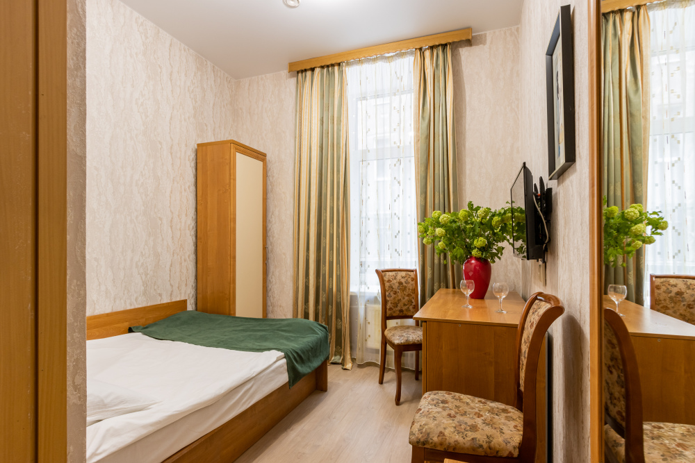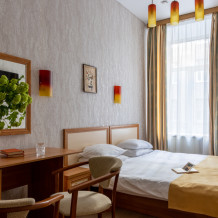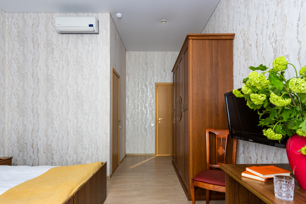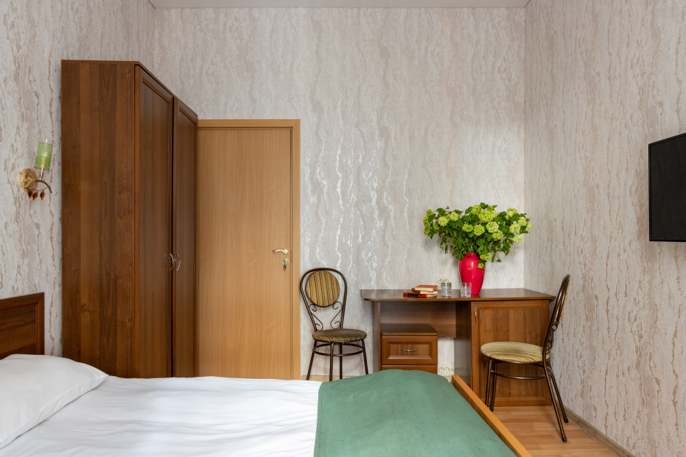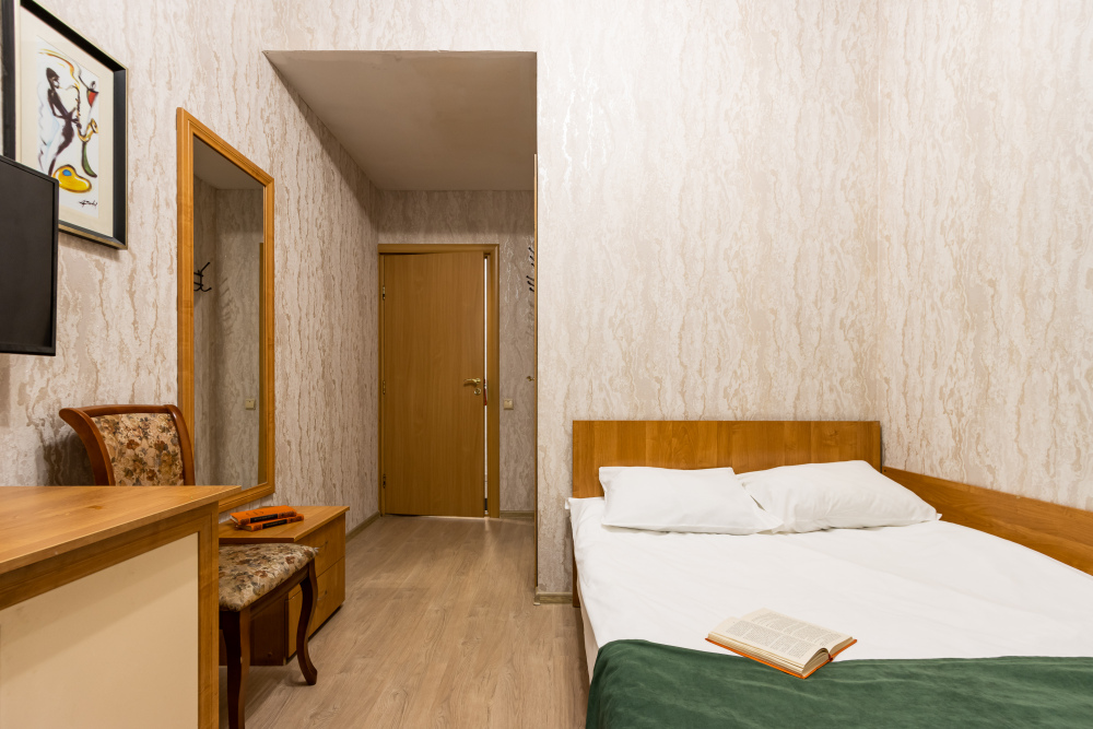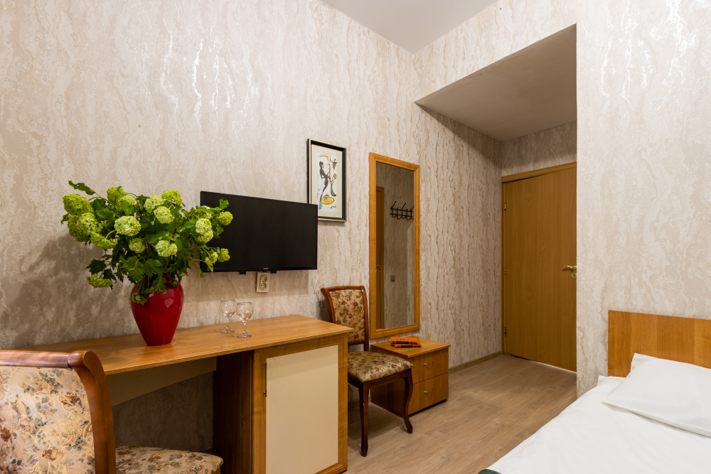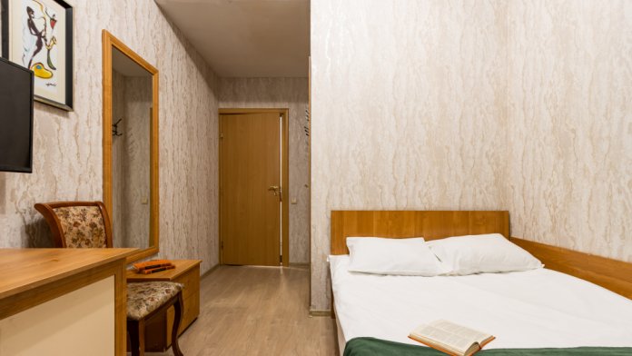 Номер оснащён всем необходимым для комфортного проживания: односпальная кровать, высокоскоростной Wi-Fi, телевизор, кондиционер, шкаф, рабочее пространство, светонепроницаемые шторы, чистое и свежее постельное бельё и полотенца, фен, туалетно-косметические принадлежности, оборудованная ванная комната.