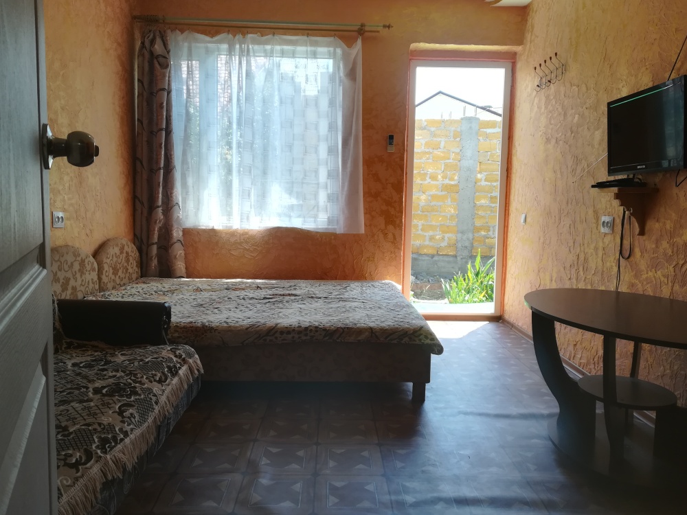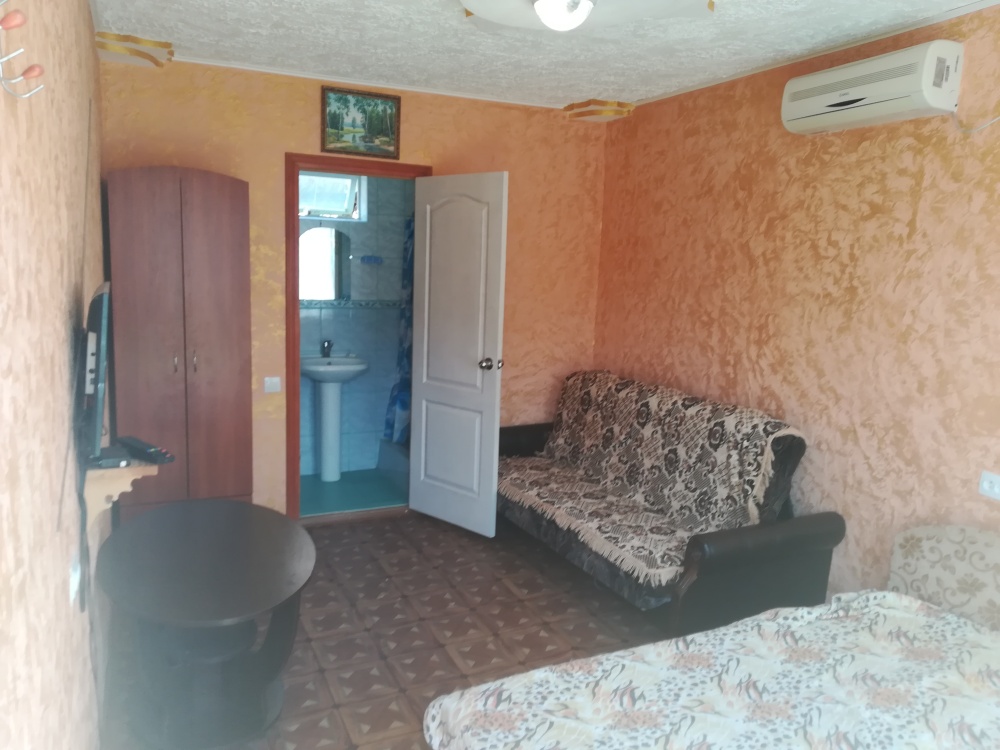 Дом с индивидуальным входом в каждую комнату. В каждой комнате санузел, кондиционер, телевизор, двуспальная кровать, шкаф, диван-книжка, в доме горячая, холодная вода круглосуточно,