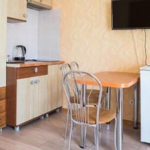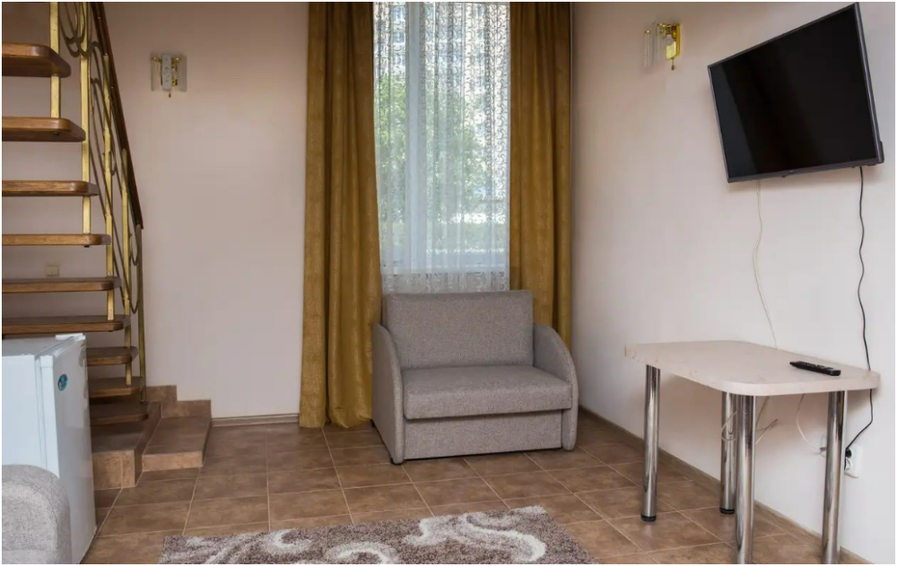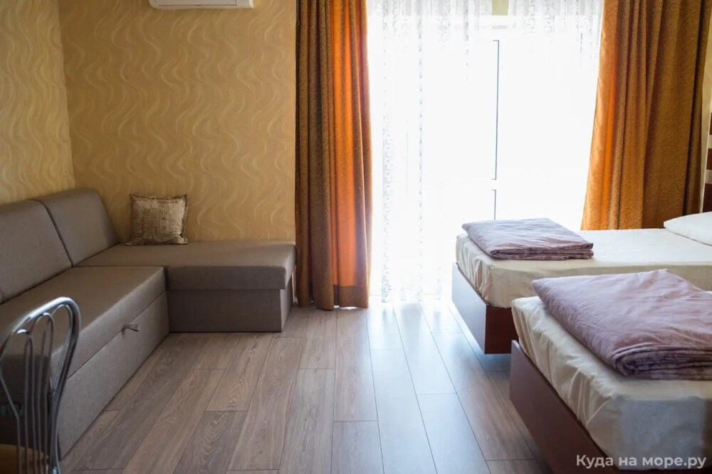 Отель сочетает в себе уют домашнего очага и комфорт современной обстановки. Все номера выходят окнами на тихий закрытый двор, оснащены стеклопакетами и кондиционерами, имеют отдельную туалетную комнату с душевой кабиной и феном. В номерах к услугам наших гостей телевизор, а также холодильник и мини-кухни, все что требуется для комфортного отдыха.