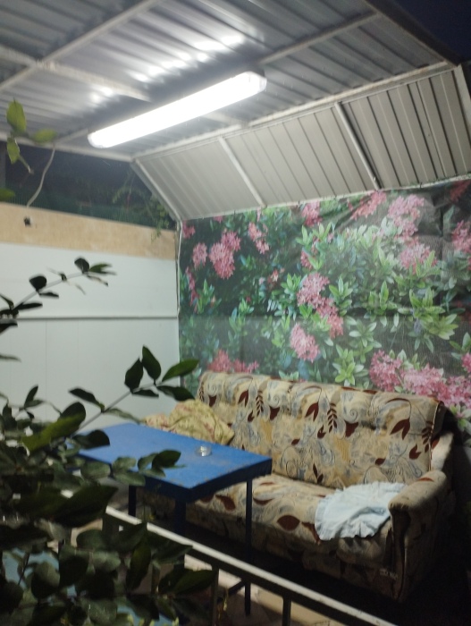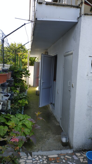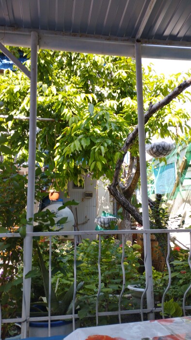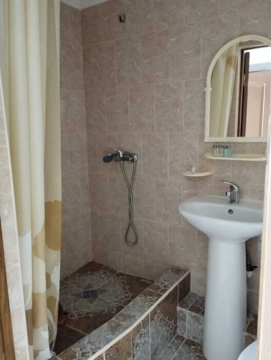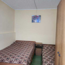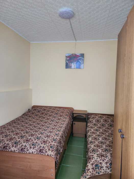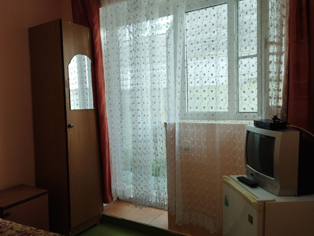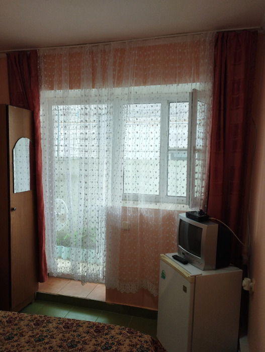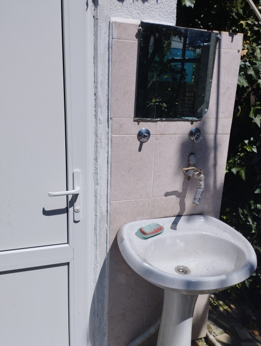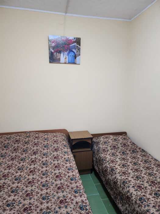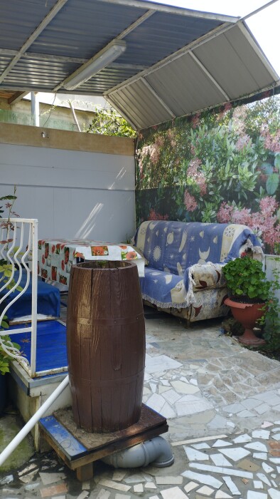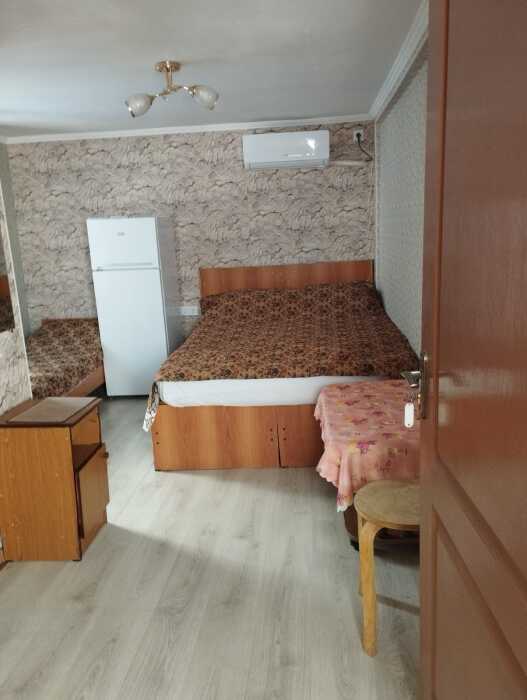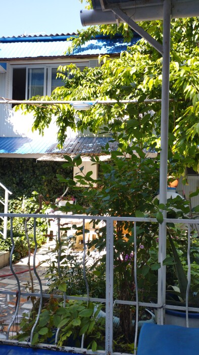 Находится домик в отдельном дворике, утопающем в зелени и цветах. Рассчитан на 8-10 человек. Один номер на втором этаже, к нему прилегает большая, открытая веранда, 3 комнаты на первом этаже. Уютный дворик с беседкой обеспечит Вам постоянное прибывание на свежем воздухе, в тени винограда и лиан. В каждой комнате есть тв, холодильник, кондиционер. Широкие и удобные кровати. В доме есть большая кухня, стиральная машина, гладильная доска, своя водонапорная башня обеспечит Вас водой в любое время.