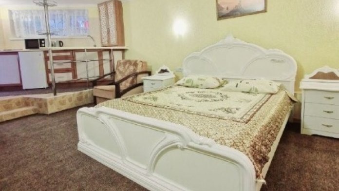 Однокомнатные апартаменты, расположенные в цокольном помещении, площадью 25 кв. м. Рассчитаны на комфортный отдых до трёх человек. Комфортное и уютное помещение со всеми удобствами. В апартаментах расположены: кухня, санузел с душевой кабинкой, холодильник и телевизор. Так же в бесплатное пользование предоставляется спутниковое телевидение, Wi-Fi.